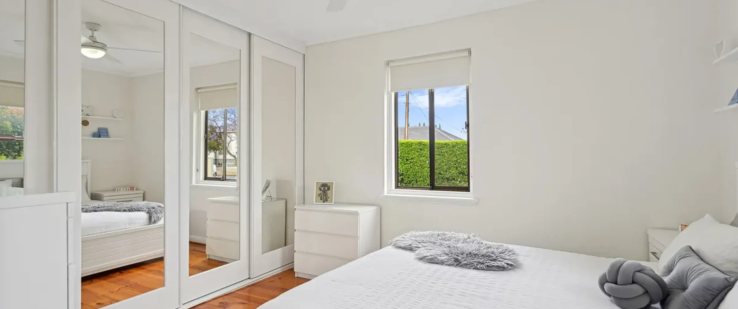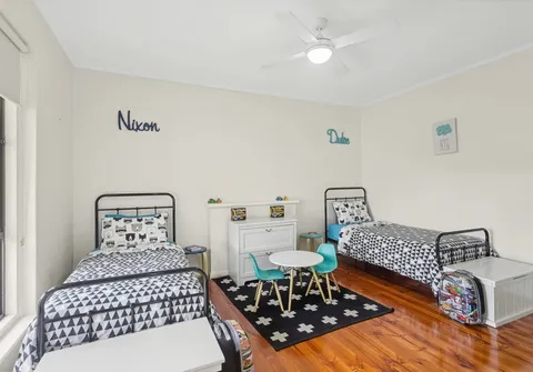 - Master bedroom with built-in robe and ceiling fan