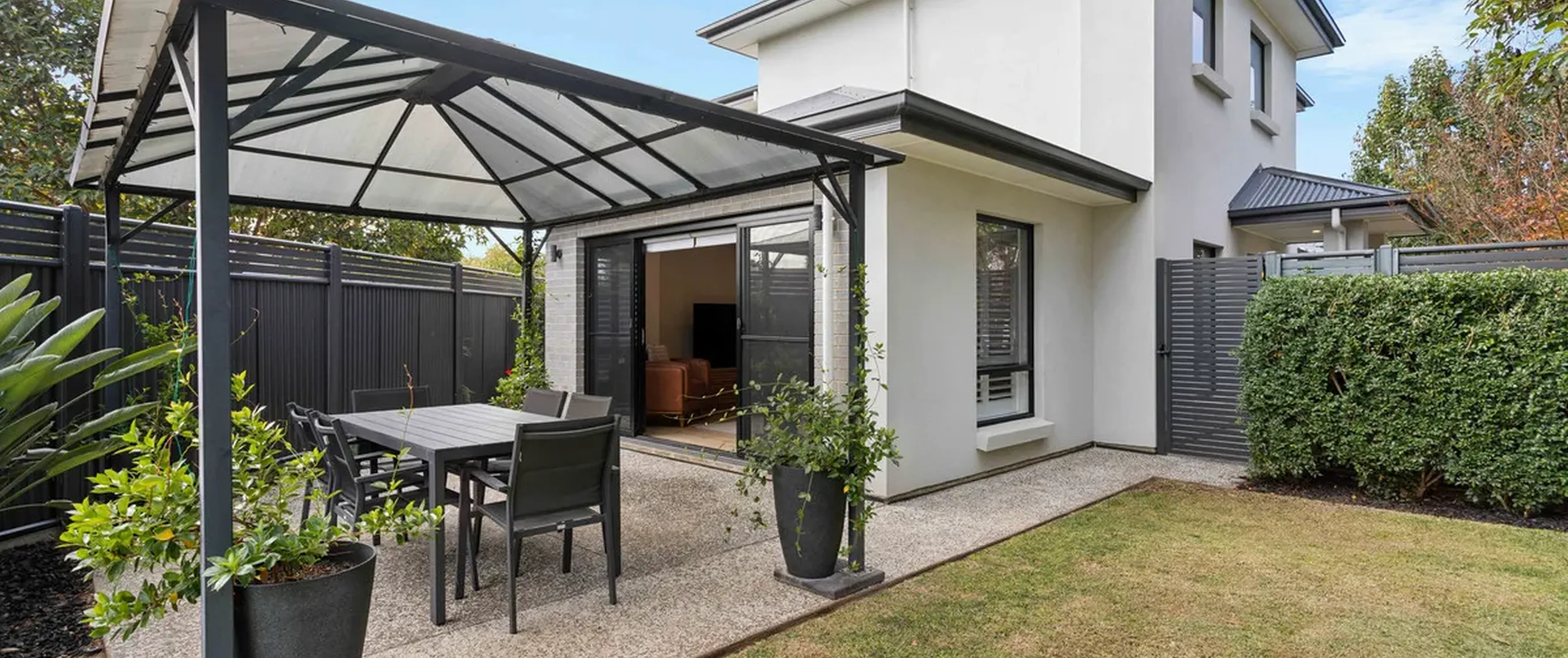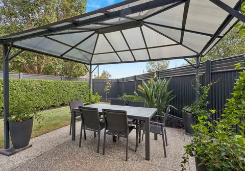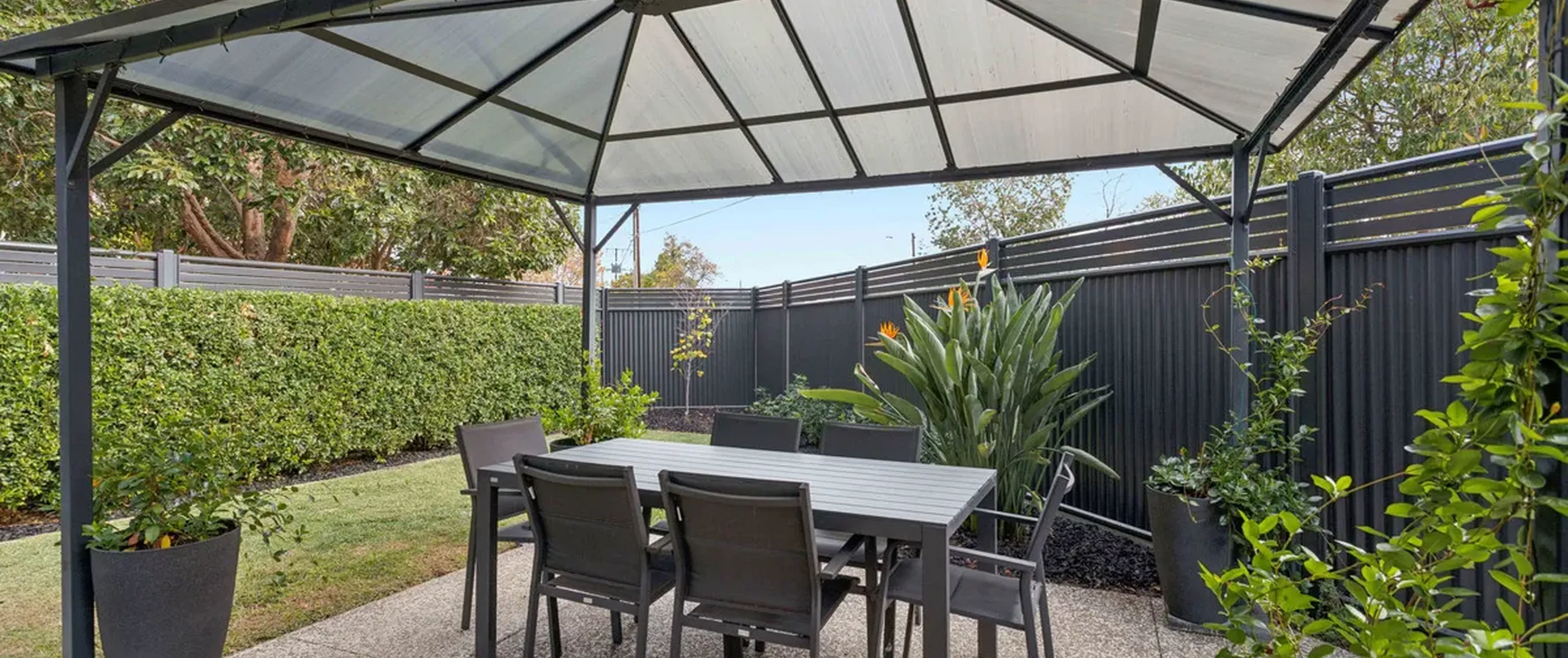 - Gazebo entertaining area, overlooking the lawn and low maintenance garden