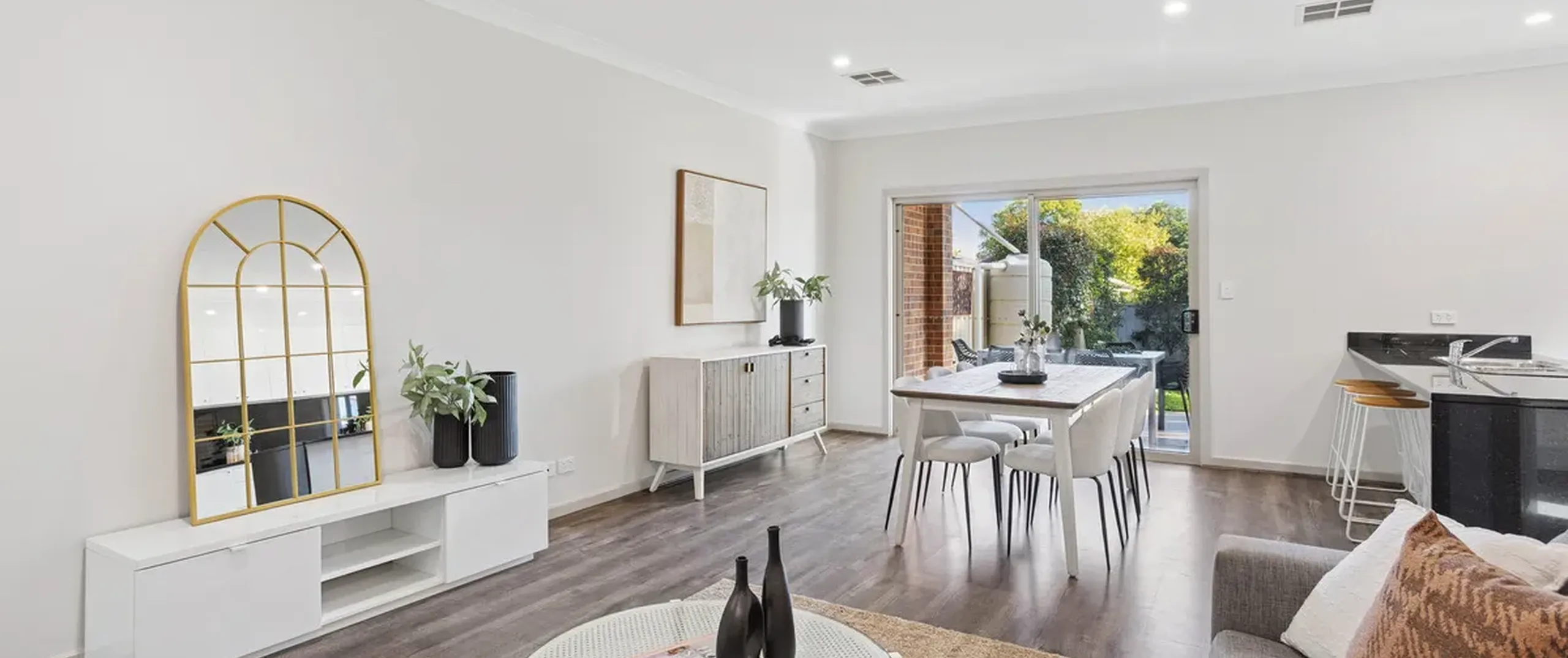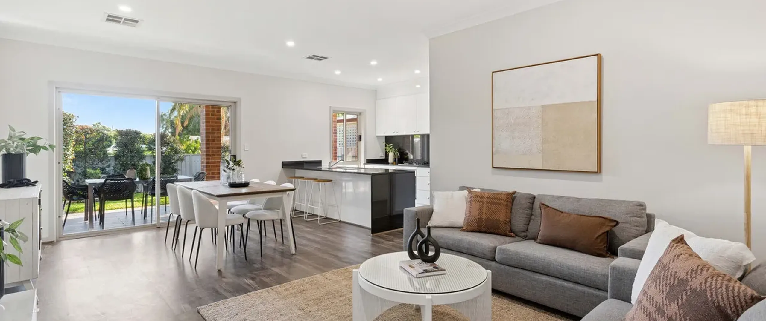 - Light filled, open plan living, dining and kitchen area