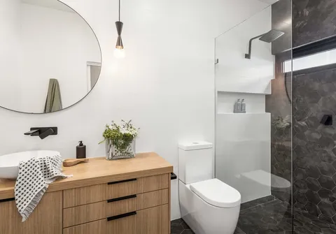 The striking Farquhar kitchen boasts a stylish mix of textures and tones, quality appliances including an 1100mm Falcon free standing cooker, Caesarstone benchtop and generous walk-through pantry connecting seamlessly to the laundry. Three spacious bedrooms include a main suite with built-in robe, ceiling fan and a luxe ensuite boasting a rainfall shower. A separate lounge or optional fourth bedroom provides flexibility, while the private study with external access provides a serene space, making working from home a pleasure.