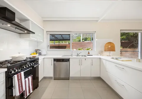 Enter a beautifully crafted layout, showcasing floating floorboards, crisp white beams and expansive living areas that effortlessly transition from formal lounges to open-plan dining and family spaces. At the centre of the home, a stylish kitchen boasts modern finishes, generous storage and a breakfast bar, ideal for daily living and entertaining alike.