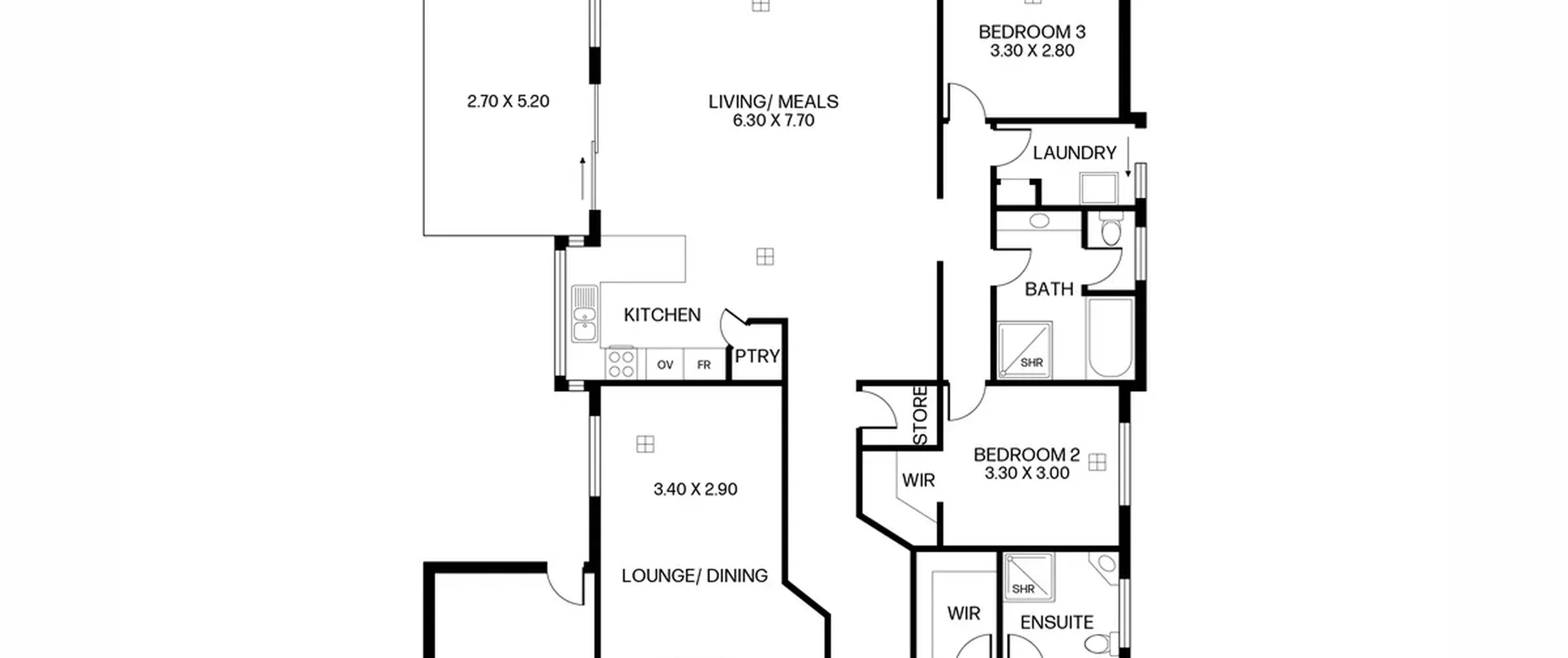 - Bedrooms 2 and 3 both of good size; bedroom 2 offering a walk-in robe
