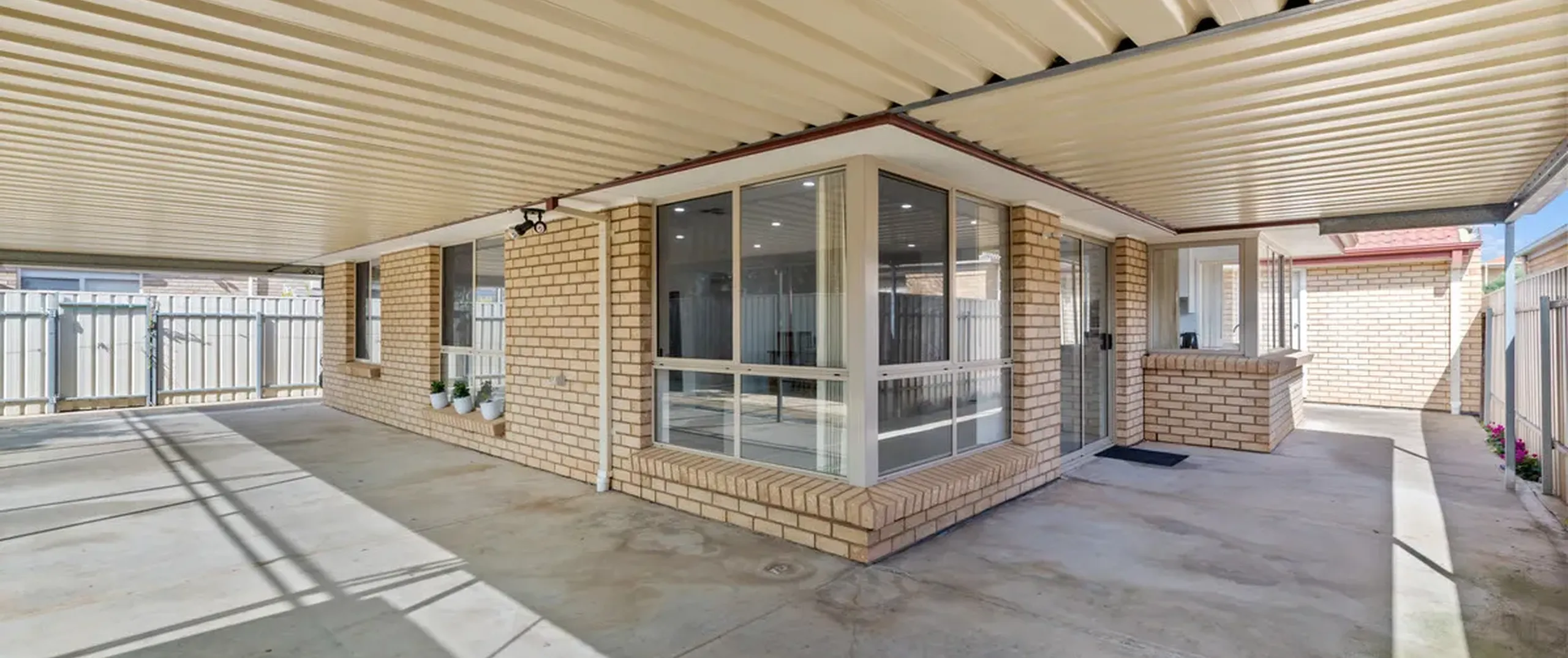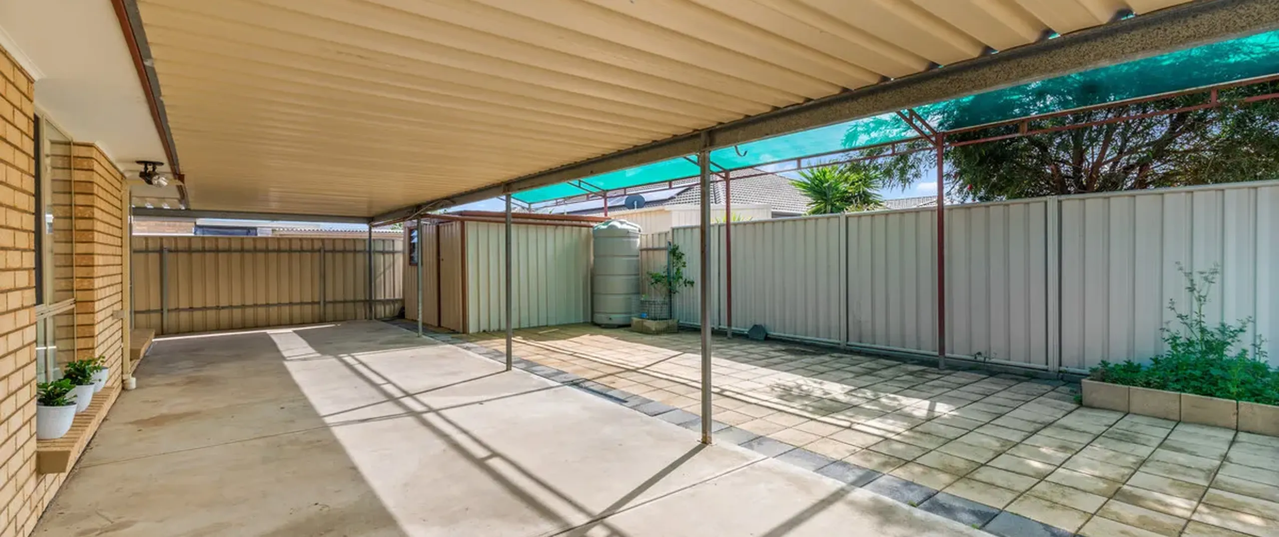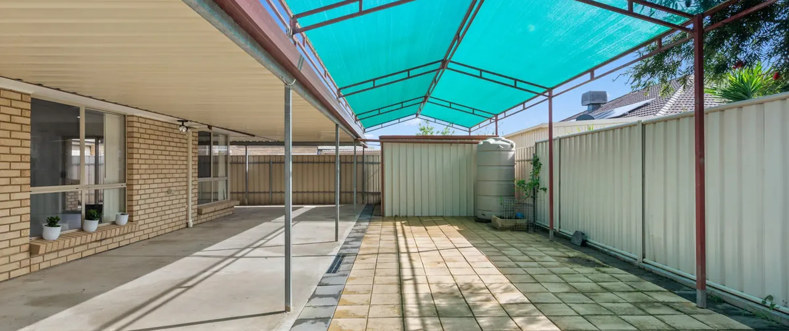 - Large verandah entertaining area with pitched shade cloth extension