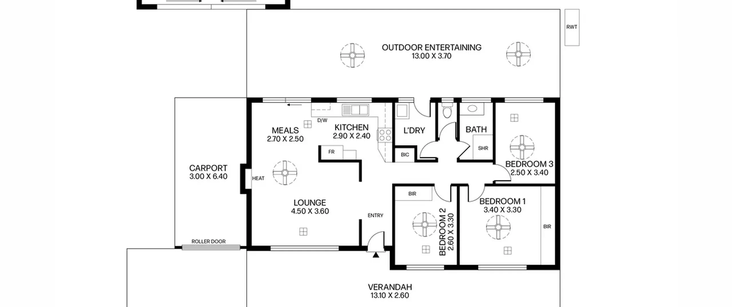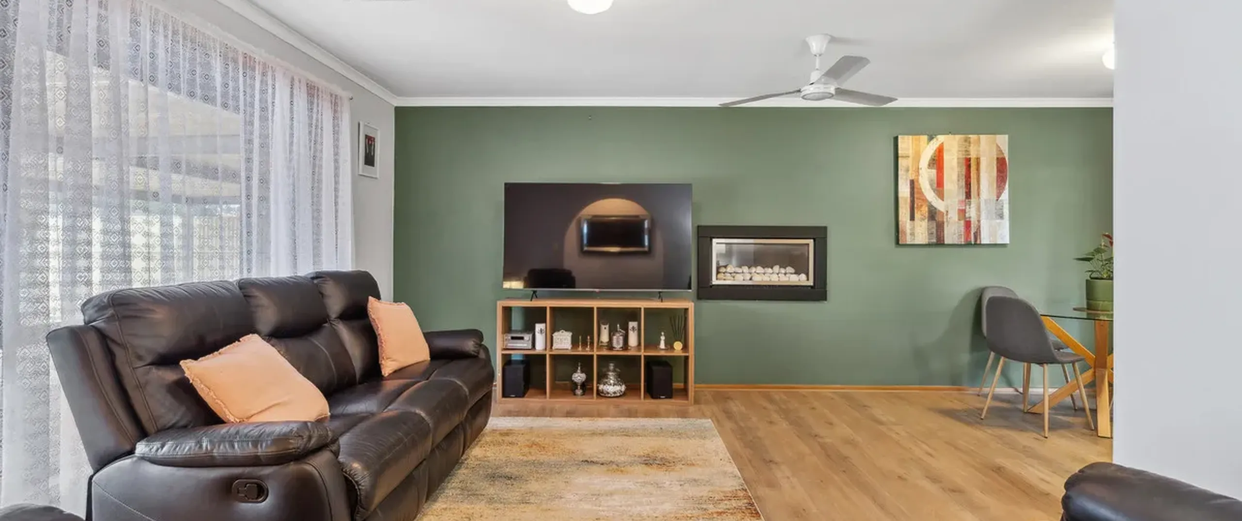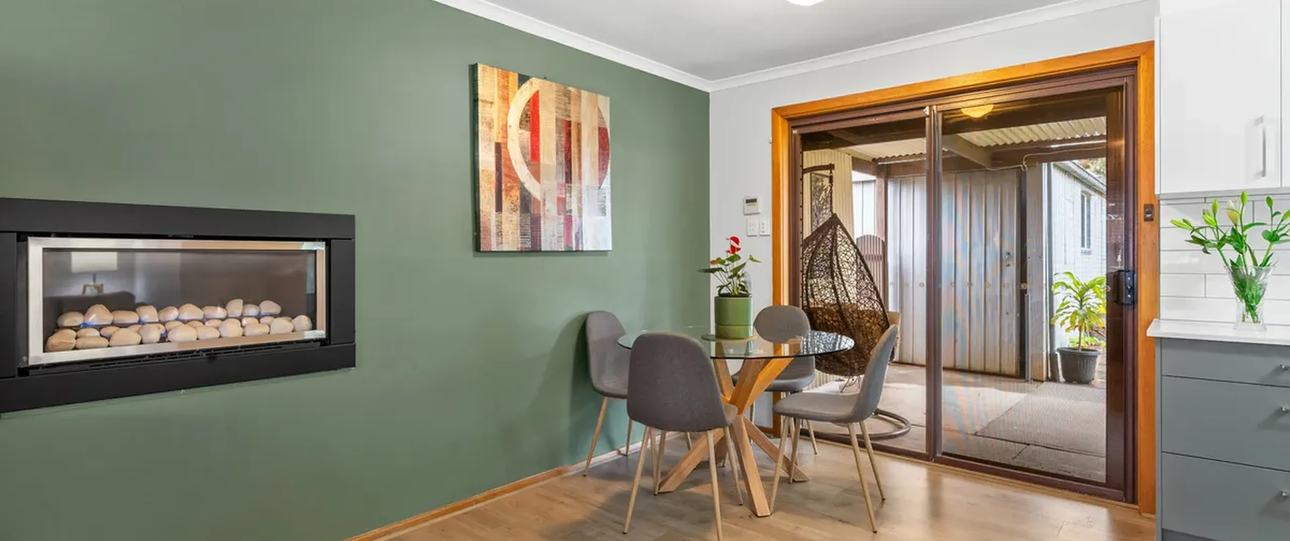 - Light filled living, dining and kitchen area with a stunning built-in heater and ceiling fan