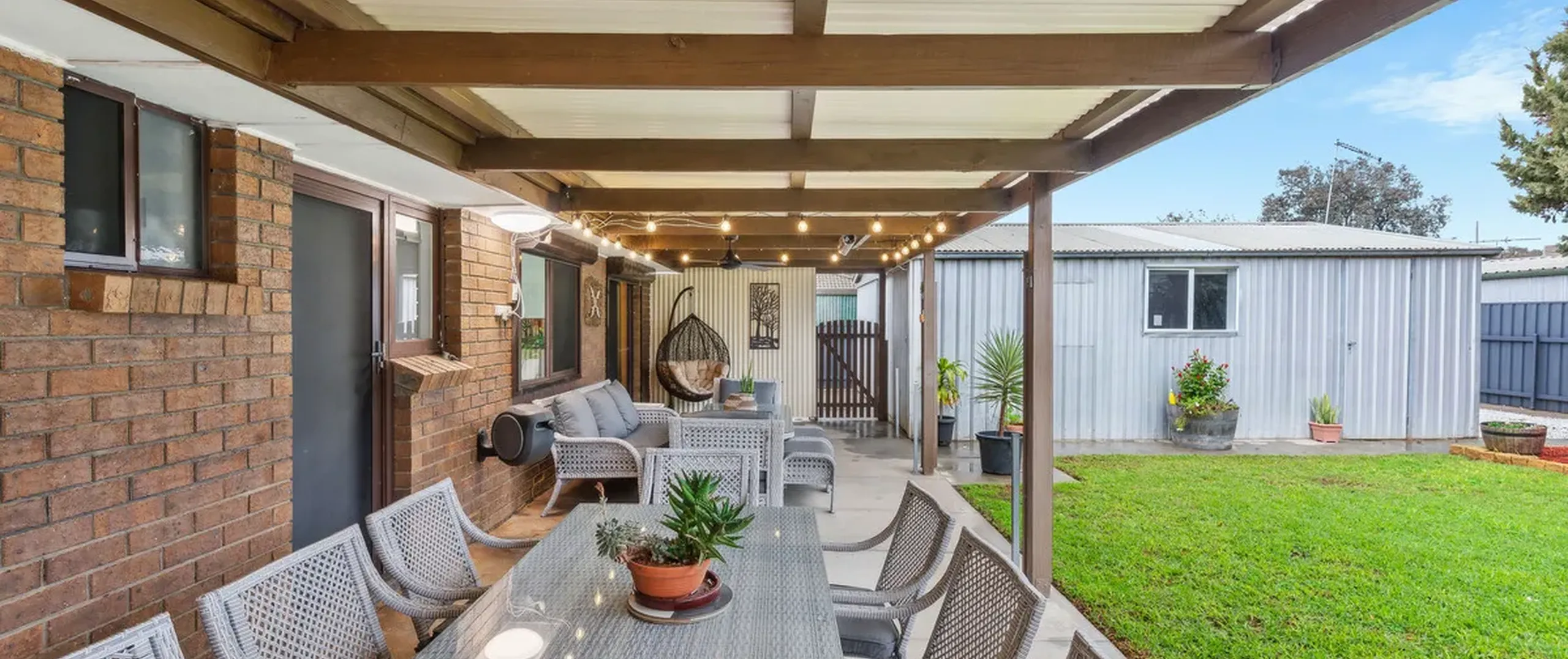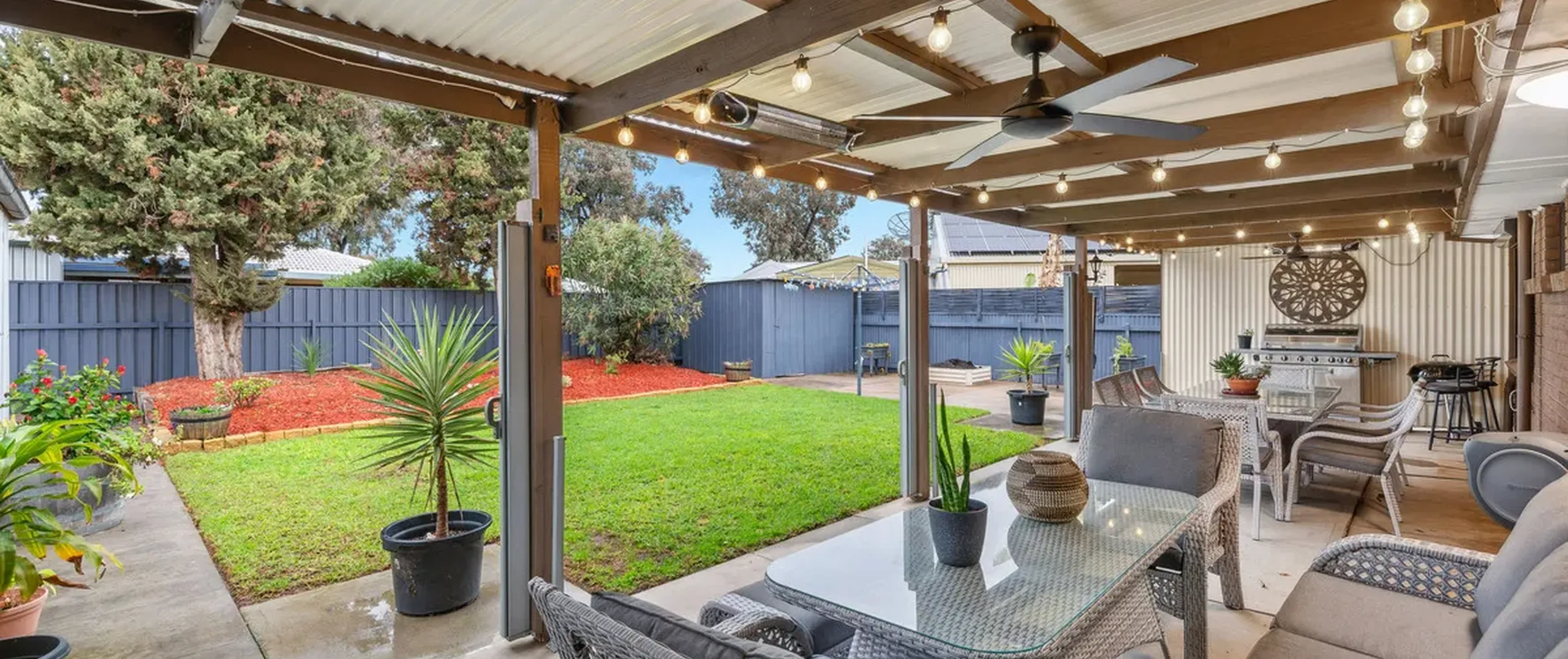 - Expansive, undercover outdoor entertaining area with café blinds, two ceiling fans, perfect for hosting family and friends