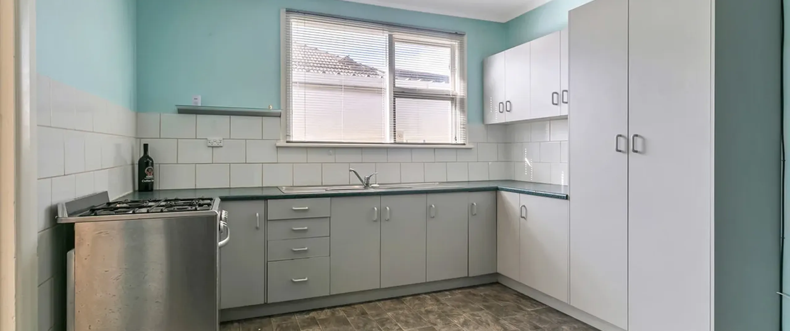 - Functional kitchen with gas cooktop and ample bench space