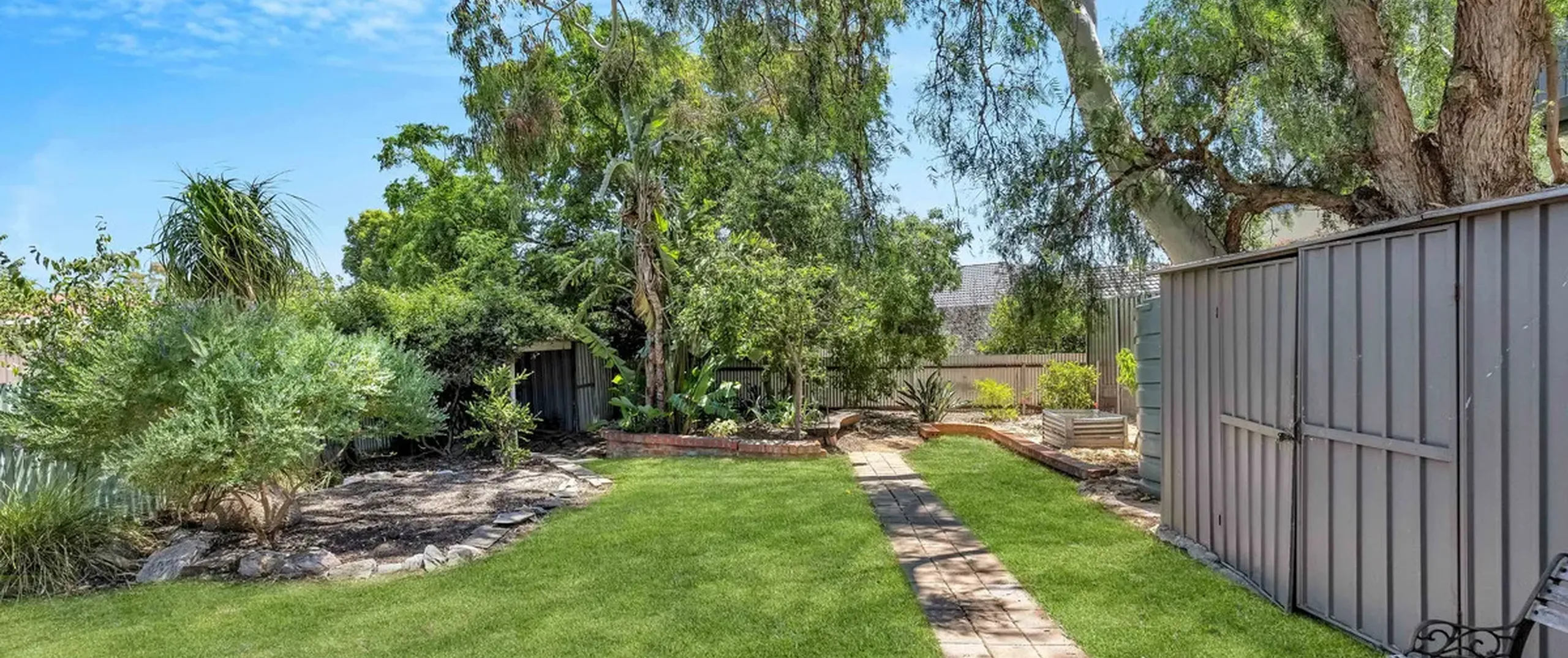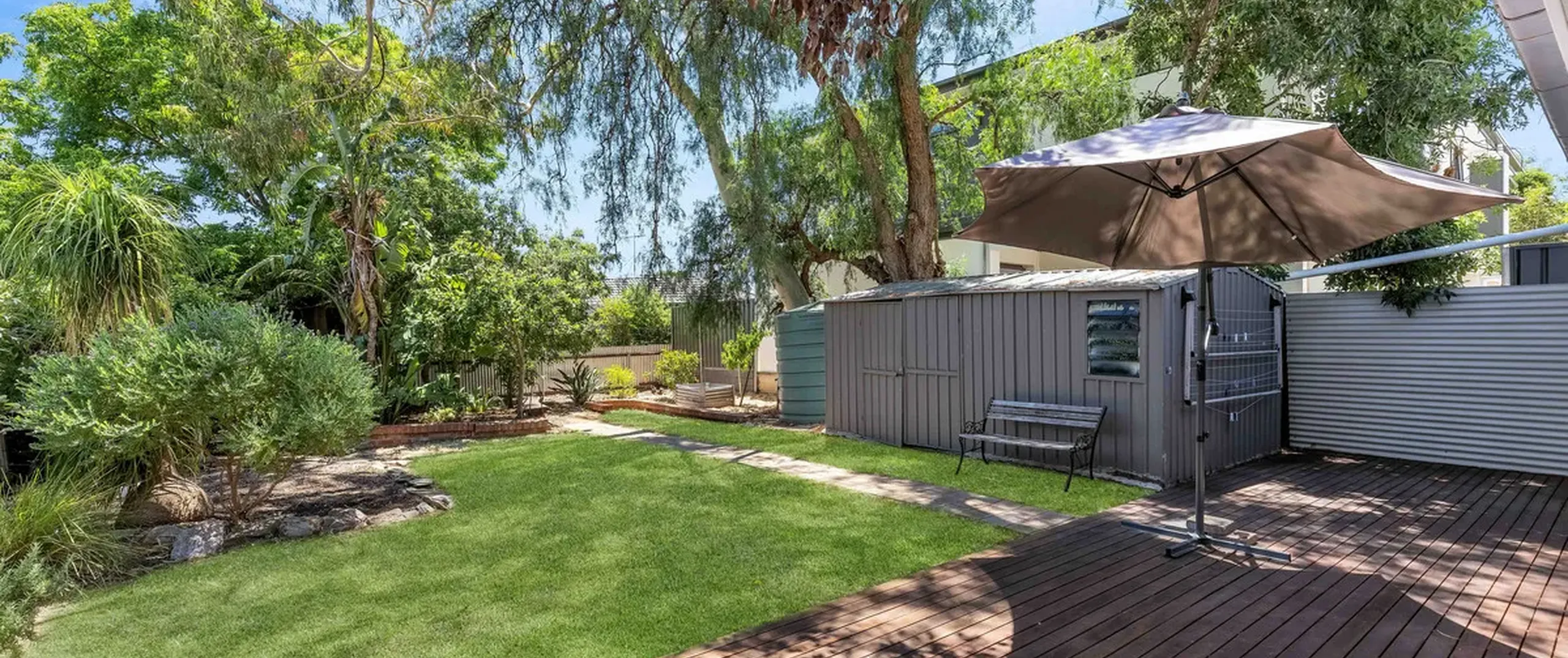 - Fully fenced, established yard with garden shed, lean to and rainwater tank