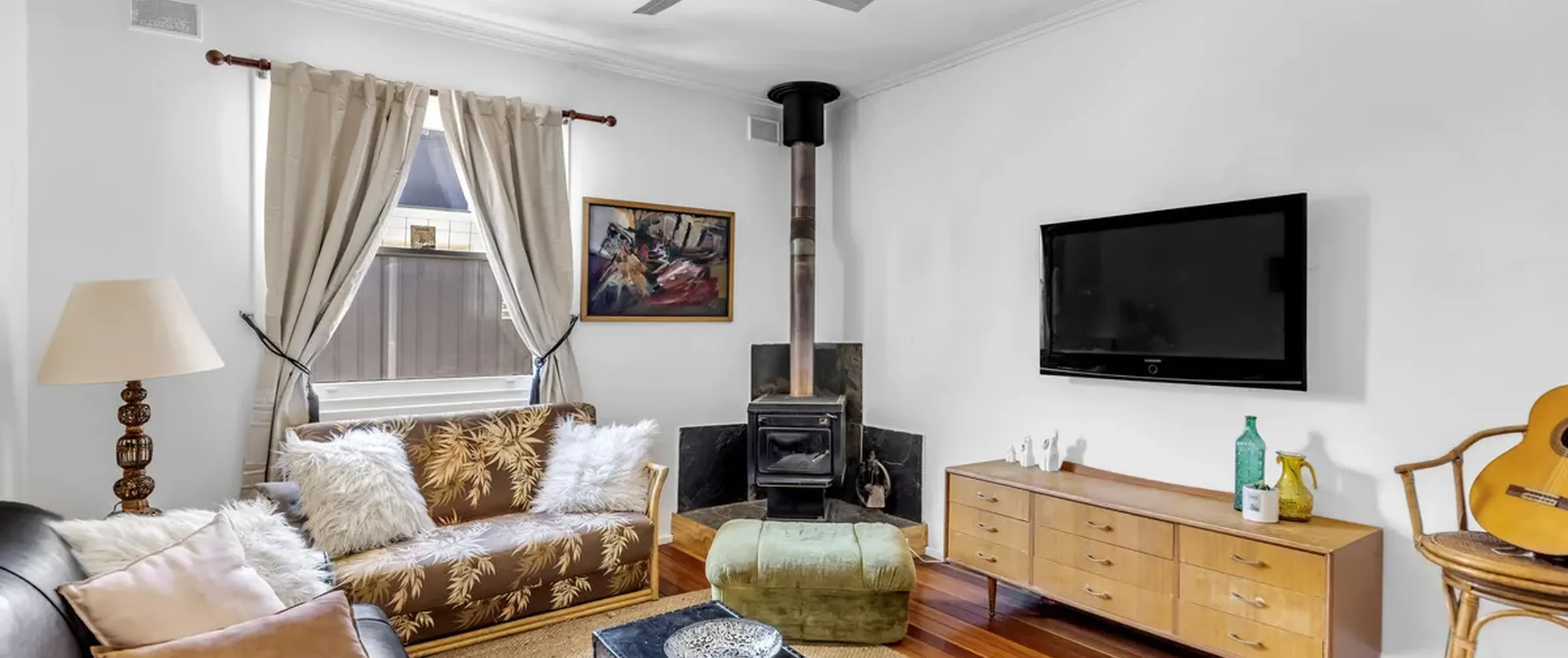 - Spacious separate lounge with fireplace and ceiling fan