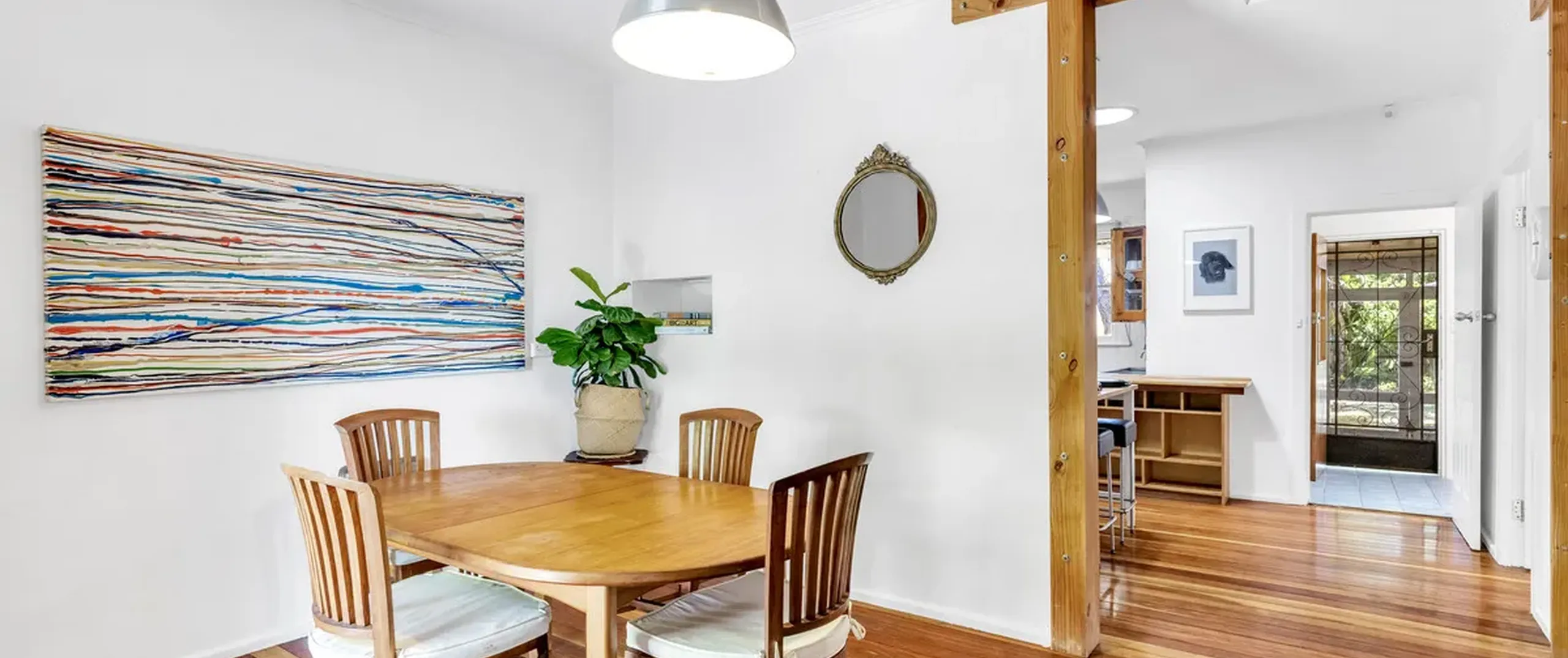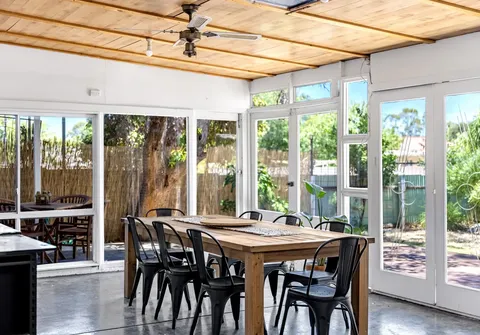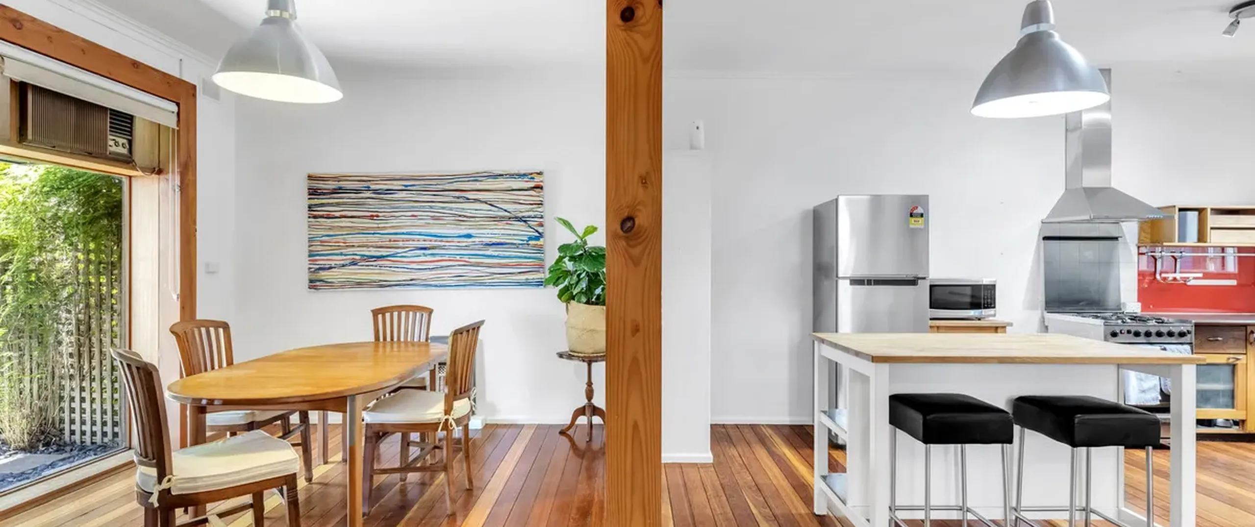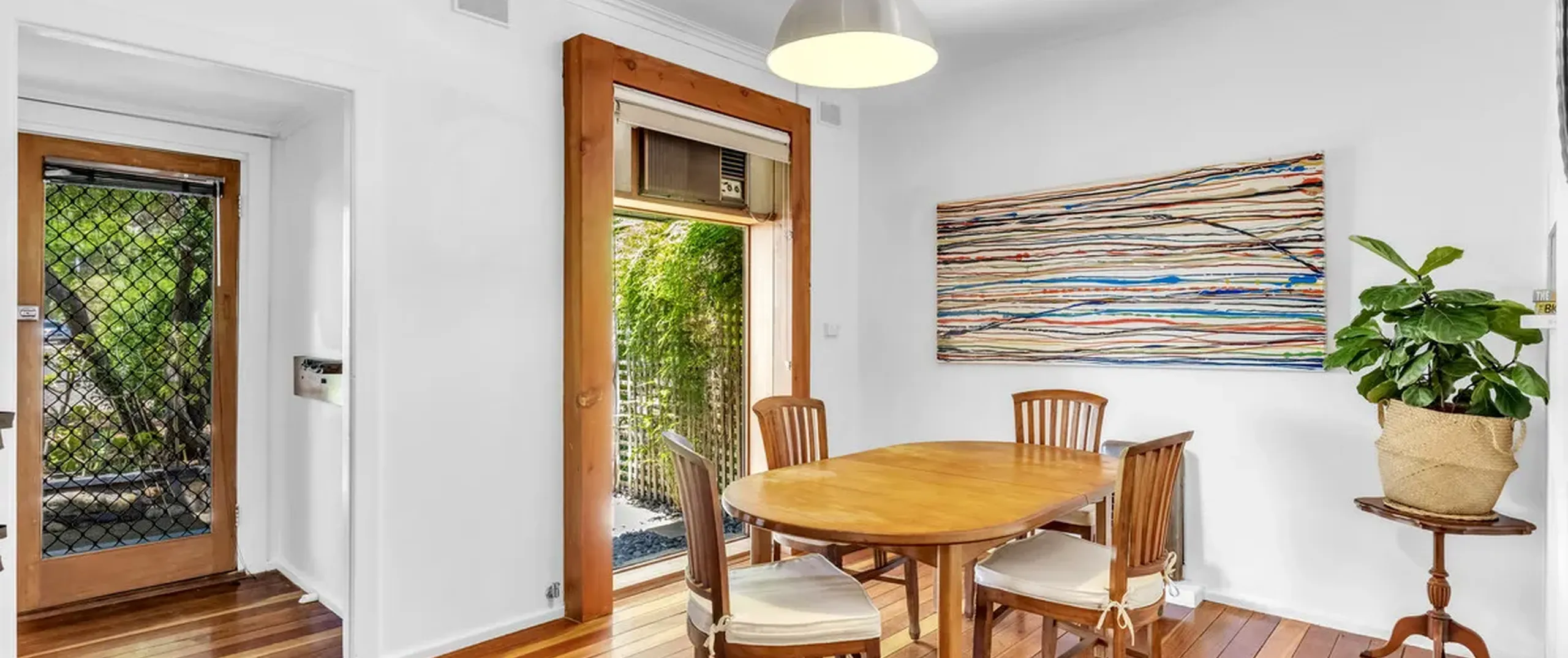 - Light filled dining area with wall unit air conditioner