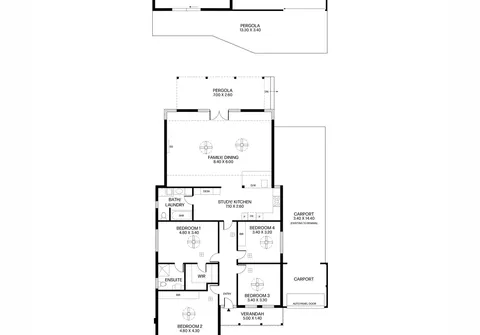 - Double length carport with automatic panel lift door and drive through access to the rear yard