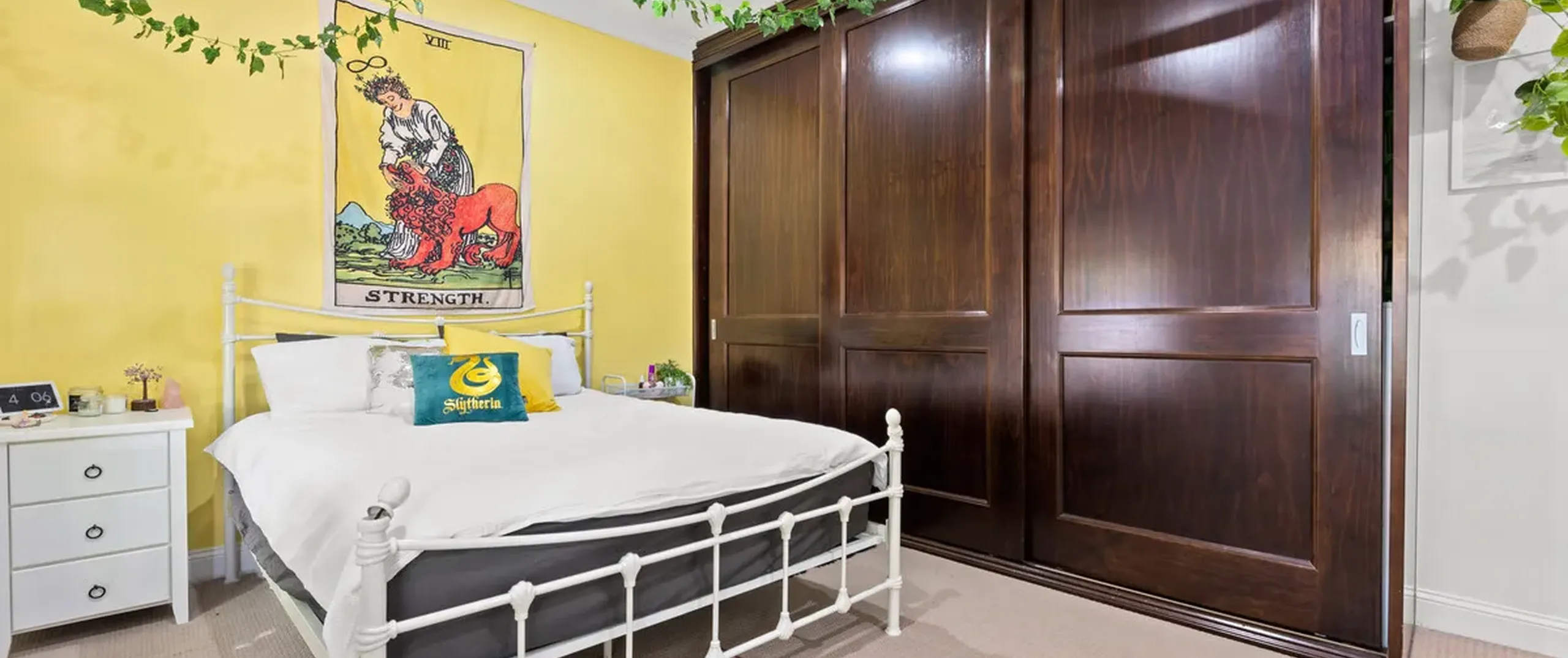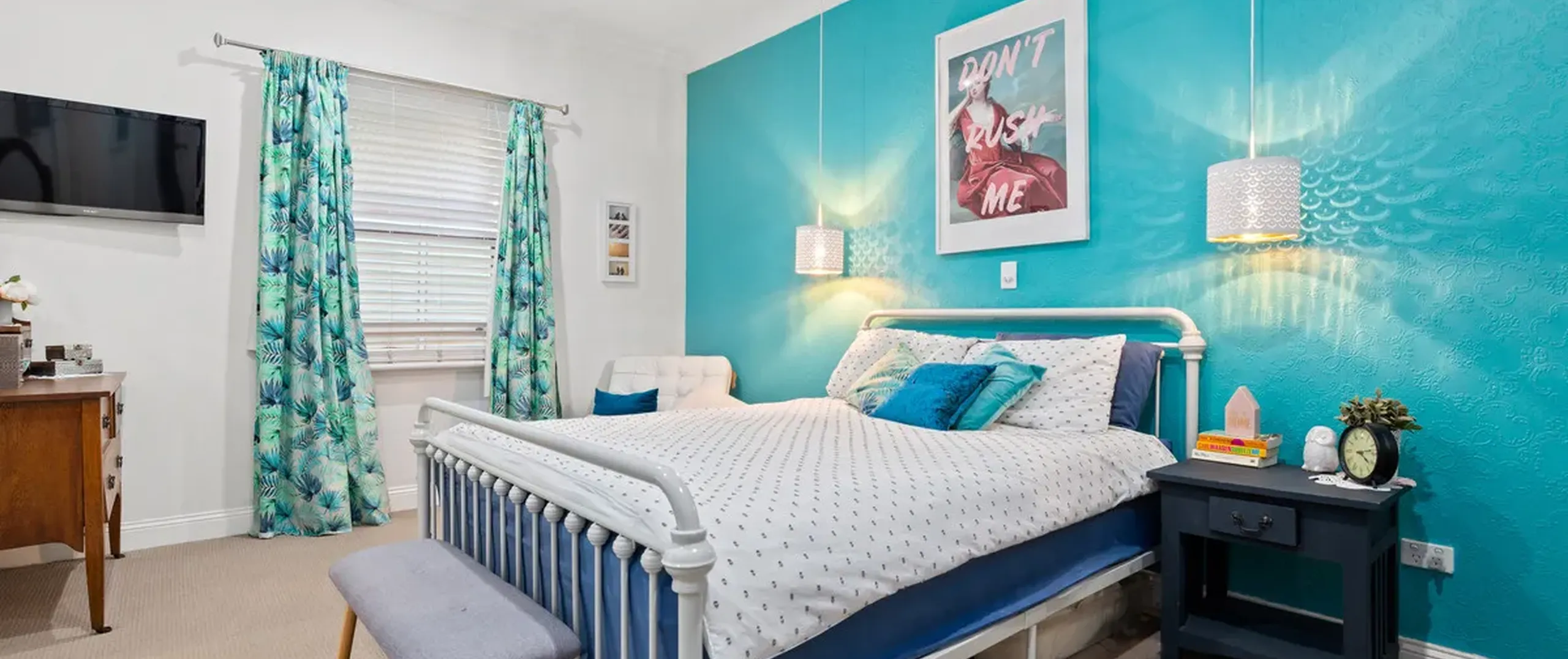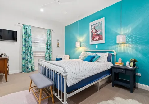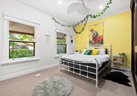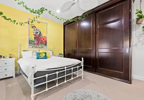 - Light filled bedroom one offering a built-in robe and ceiling fan