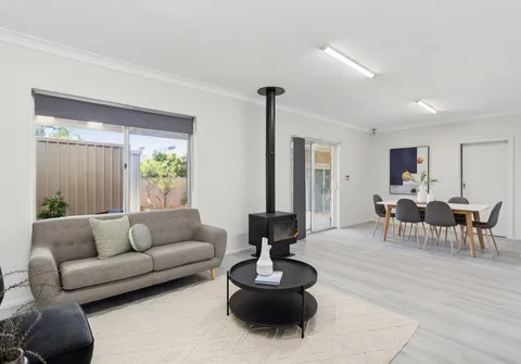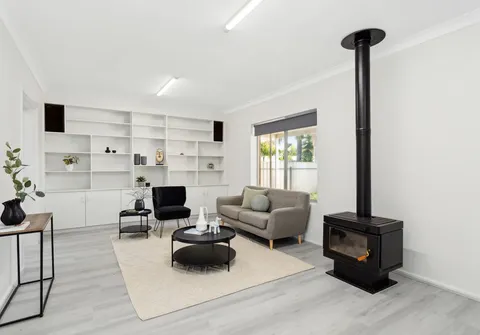 - The spacious living and dining areas featuring built-in cabinetry and a cosy combustion heater, will serve as the heart of the home