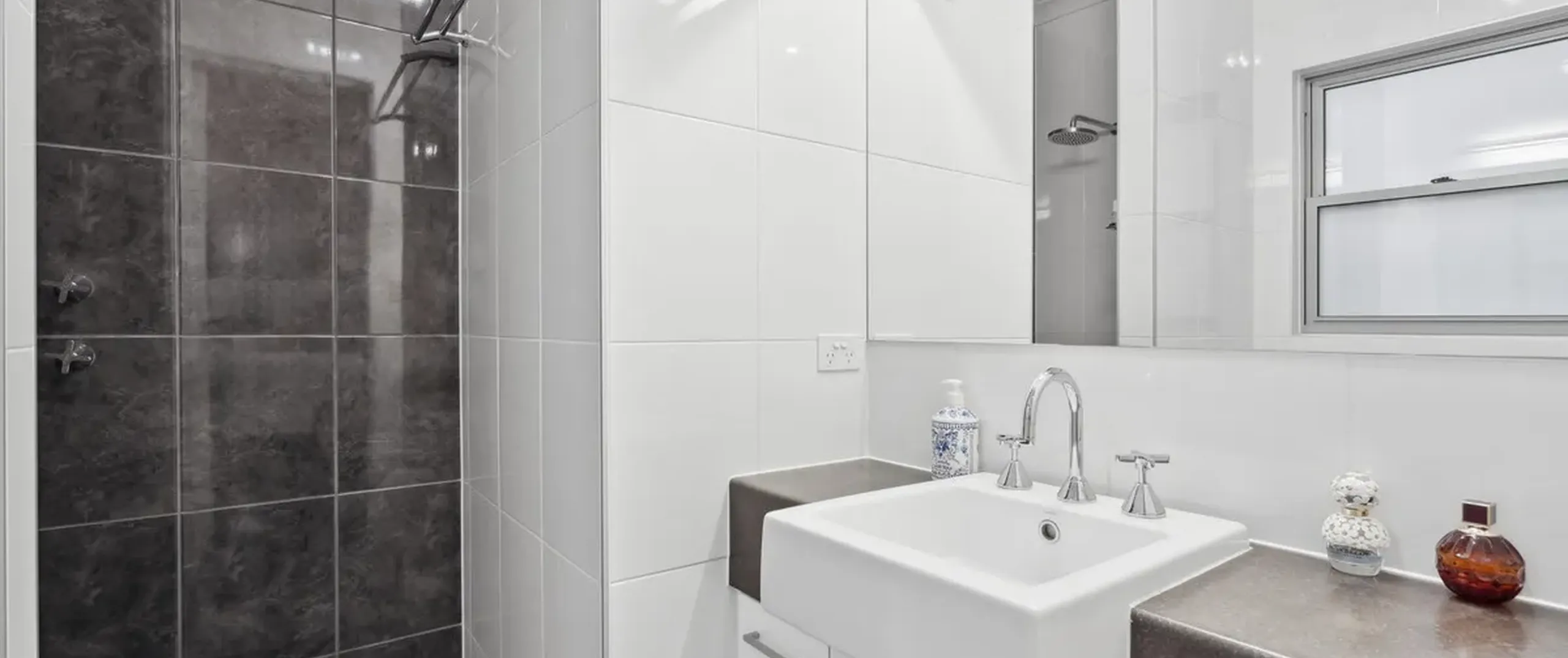 - Large master bedroom with two built-in robes, ceiling fan and ensuite featuring floor to ceiling tiles