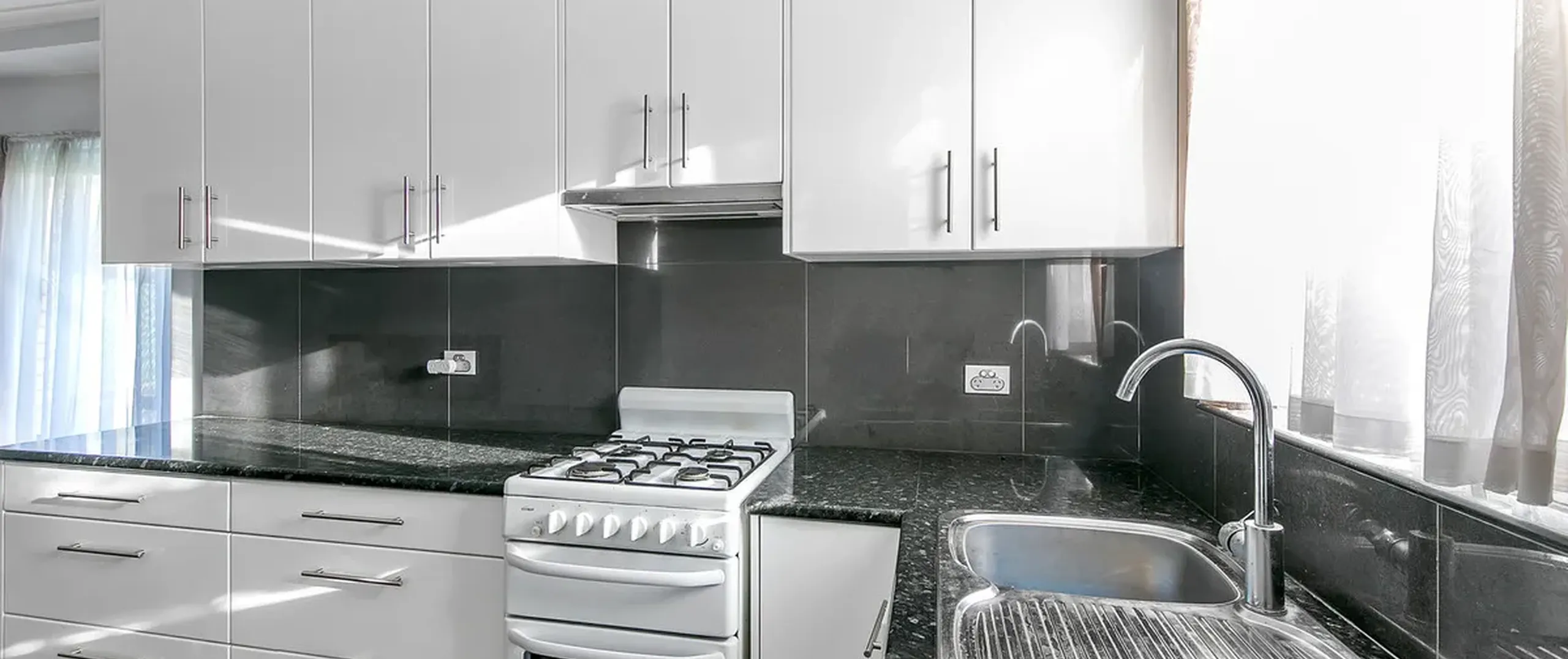 - Contemporary kitchen with standalone gas cooktop and oven