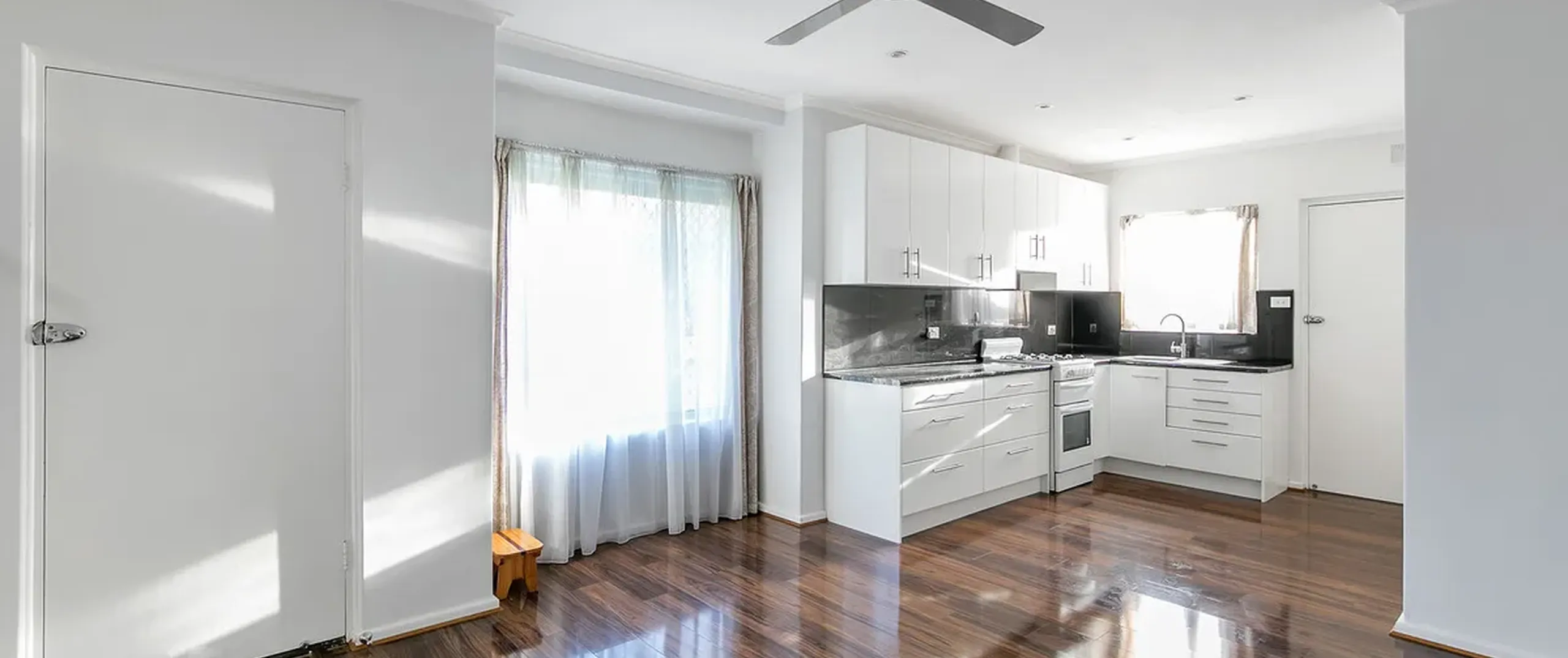 - Well-sized bedroom two with ceiling fan