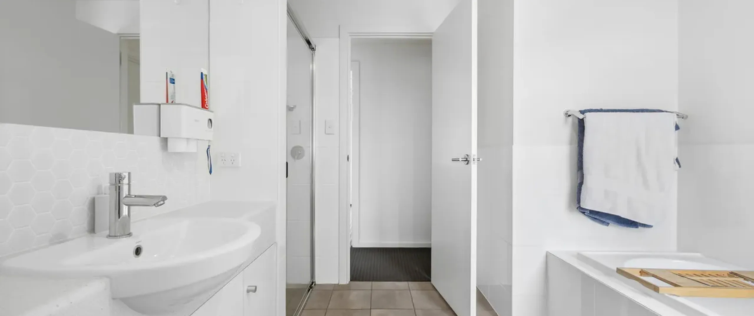 - Dual access, timeless bathroom with separate bath and shower