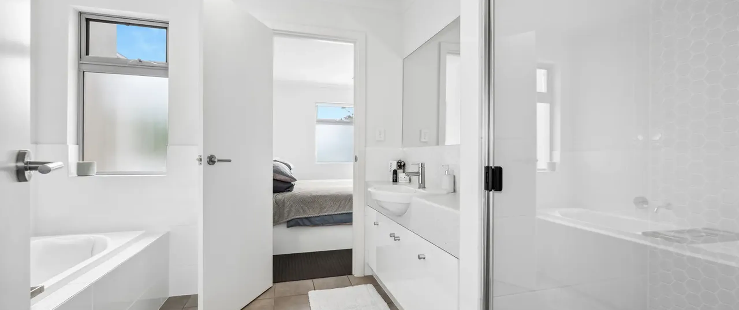 - Bedroom one with built-in robe and direct access to the bathroom