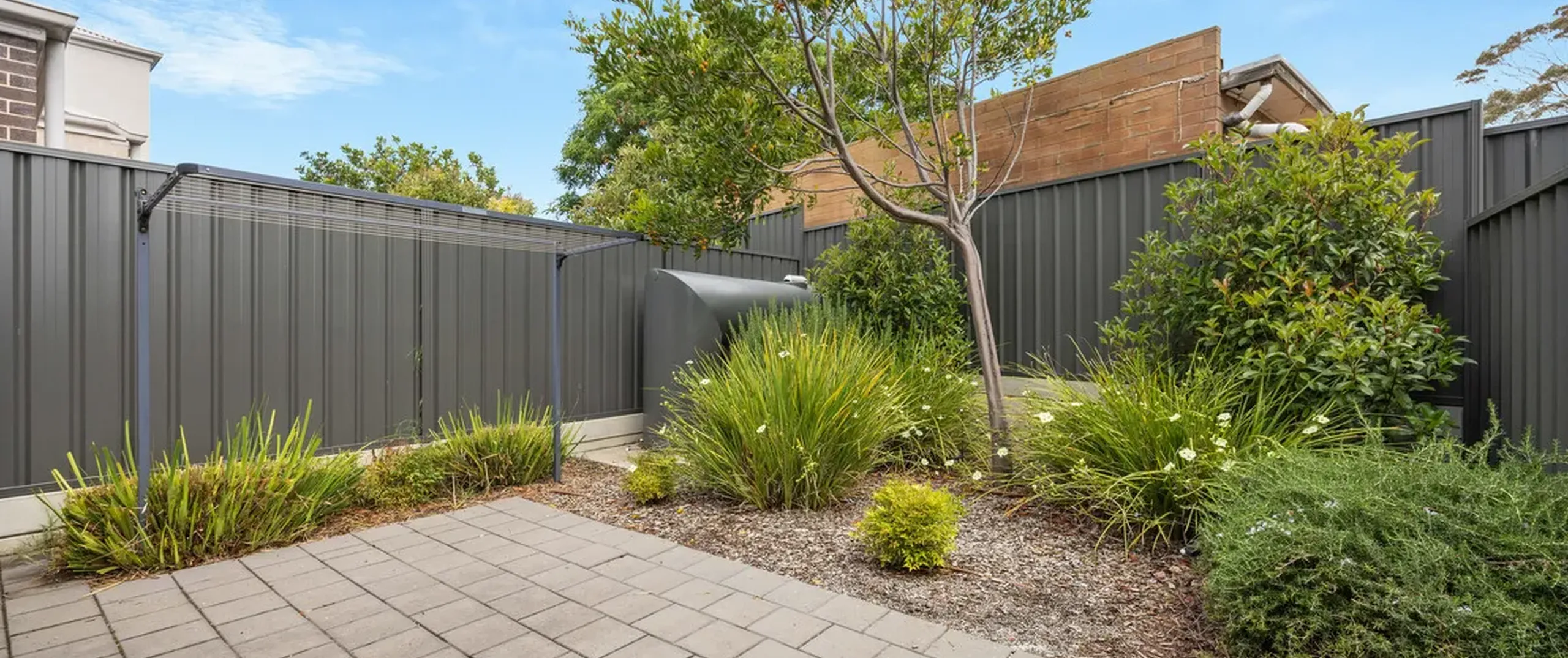 - Low maintenance courtyard with paved and garden area