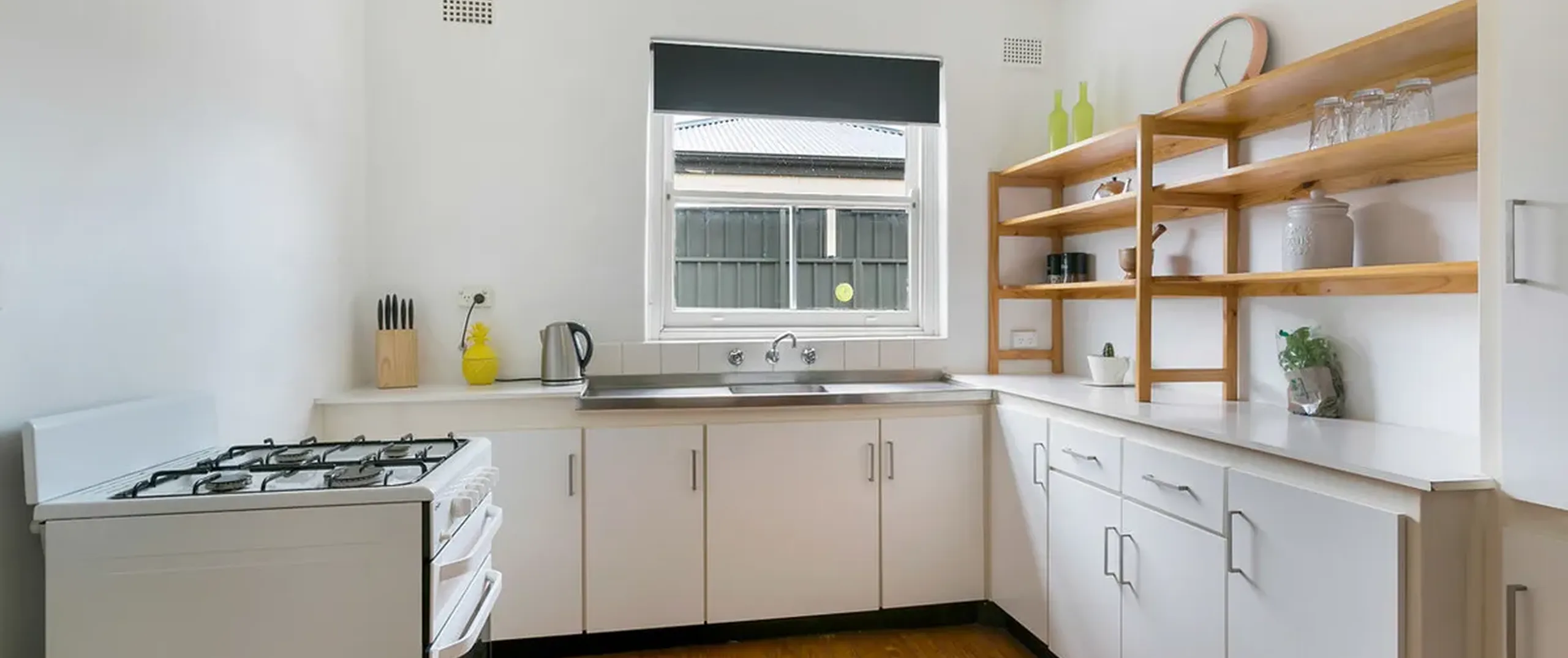 - Spacious dine-in kitchen with gas cooktop, ample cupboard and bench space and ceiling fan
