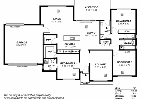 - Double garage with automatic roller doors, direct internal entry and valuable drive through access to rear