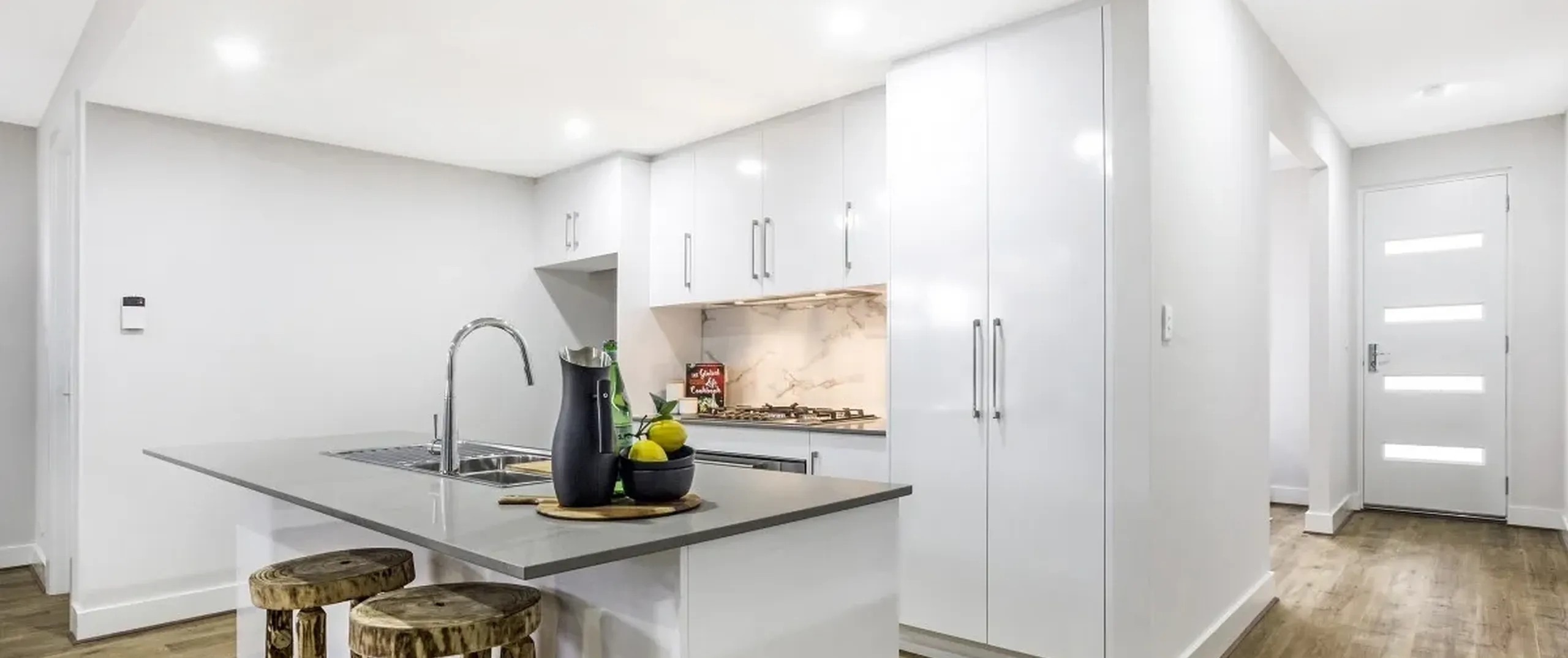 - Modern, stylish kitchen with Ceasarstone benchtops, dishwasher, walk-in pantry, island bench and breakfast bar