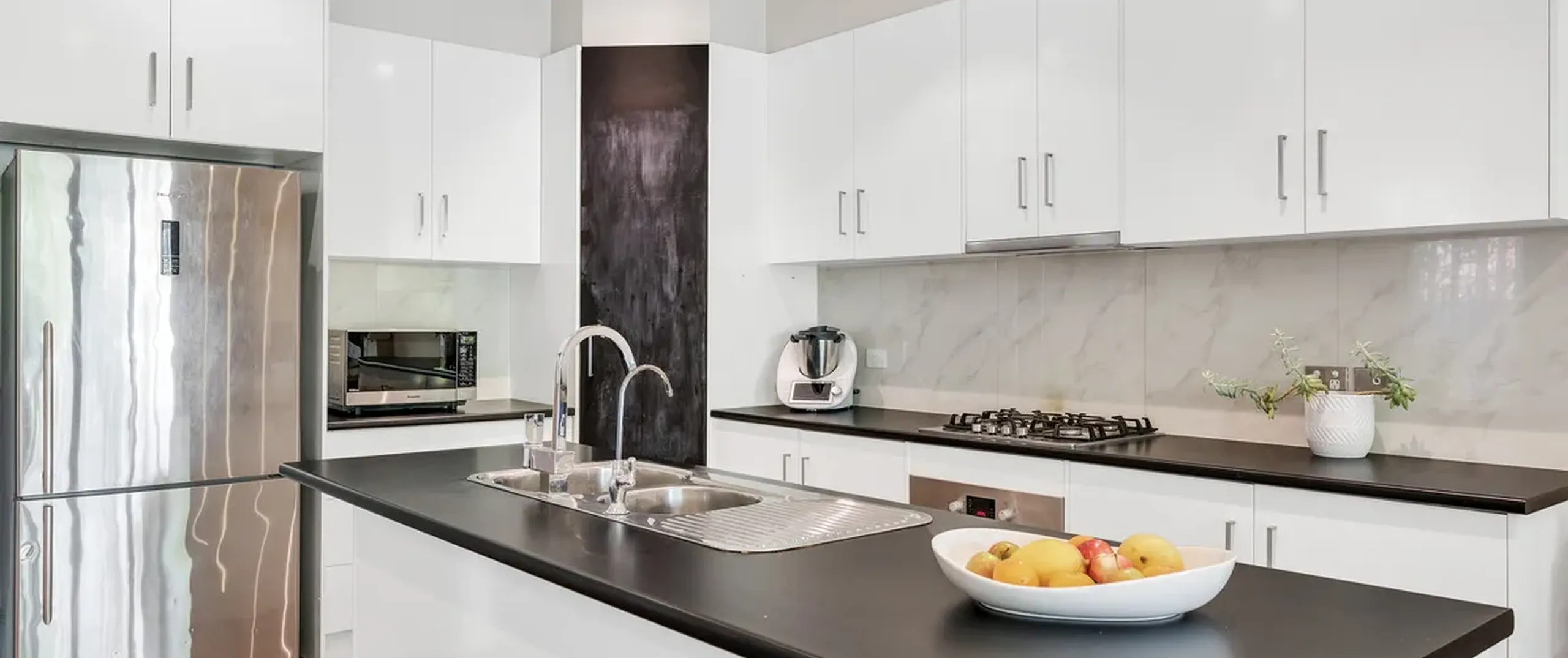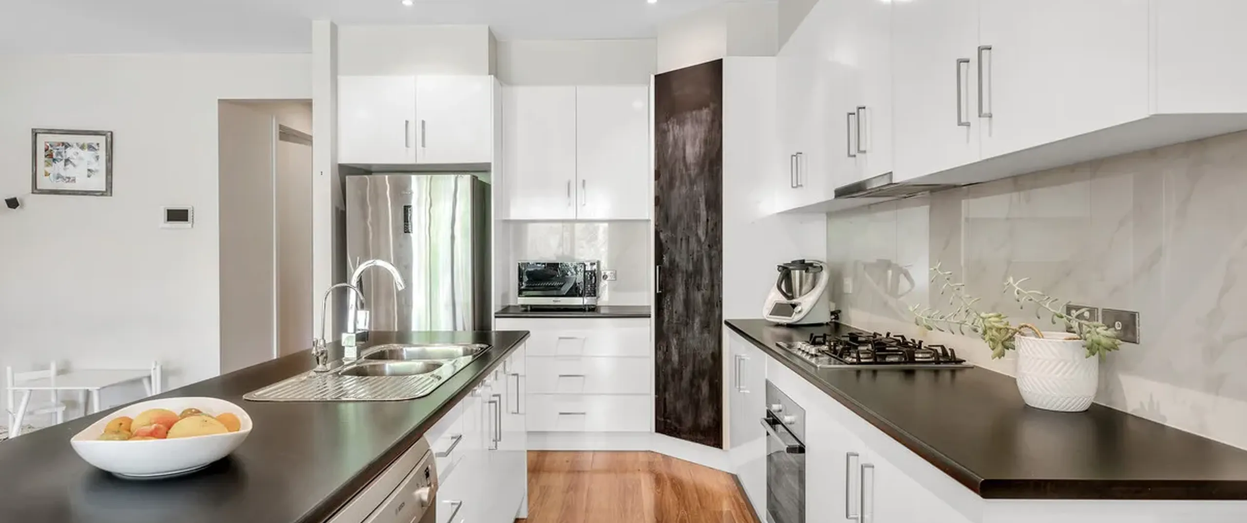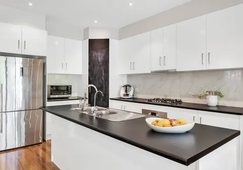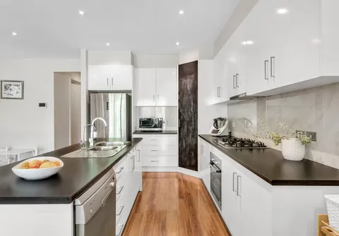 - Stylish kitchen with breakfast bar, ample cupboard and bench space and stainless steel appliances including gas cooktop, Bosch oven and Bosch dishwasher