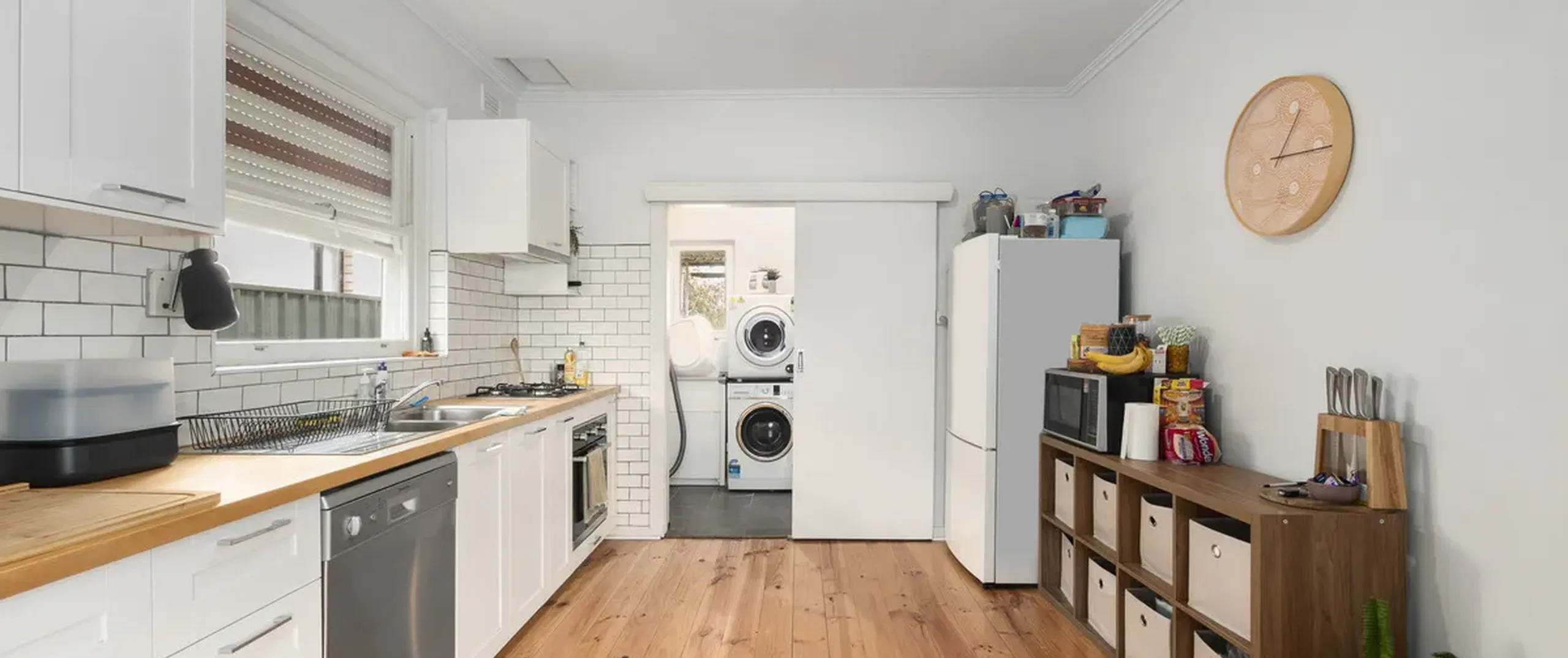 - Practical laundry with storage and external access