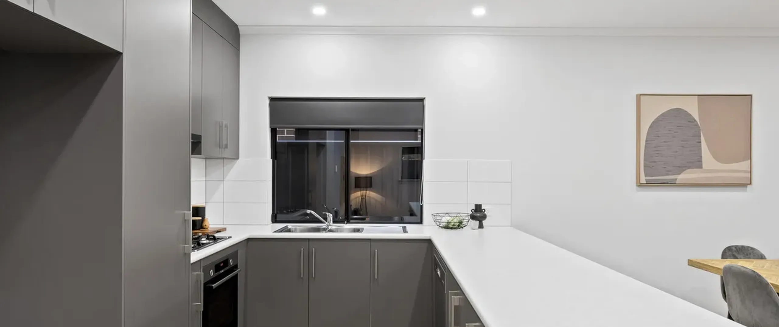 - Sleek kitchen with stainless steel dishwasher, oven and gas cooktop, complete with an abundance of cupboard and bench space featuring a breakfast bar