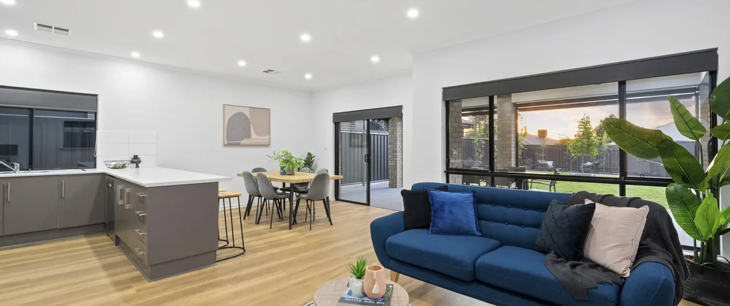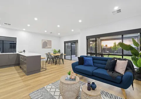- Stunning open plan living, kitchen and dining area with glass sliding doors opening to the alfresco