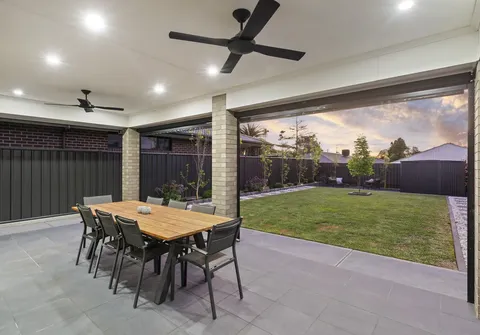 Outside you will find a delightfully landscaped and generous rear yard providing the perfect space to entertain while the kids and furry friends run free. An enclosed alfresco space with ceiling fans and pull-down shades completes this stunning abode.