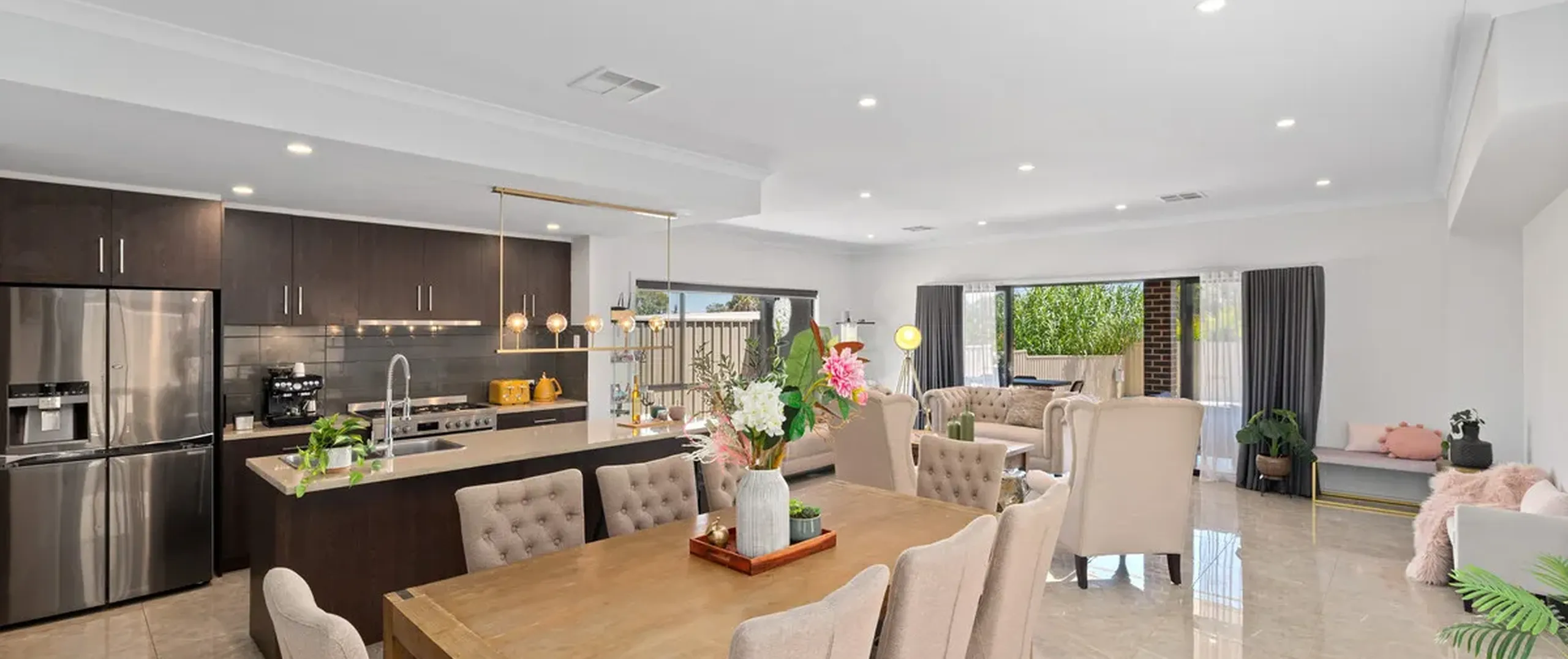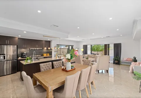 - Light-filled open-plan meals and living area with double glass sliding doors flowing seamlessly to the alfresco