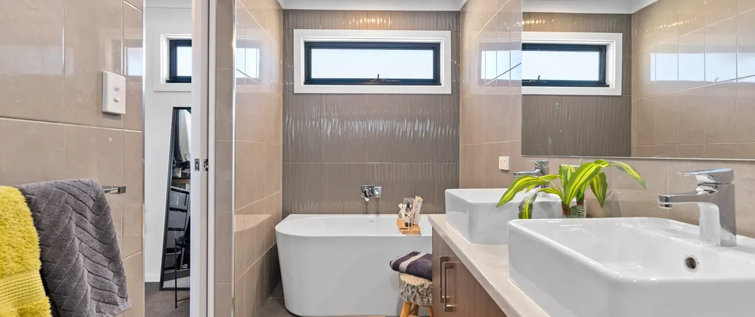 - Enormous master suite with generous walk-in robe and ensuite, featuring his and hers vanity and floor to ceiling tiles