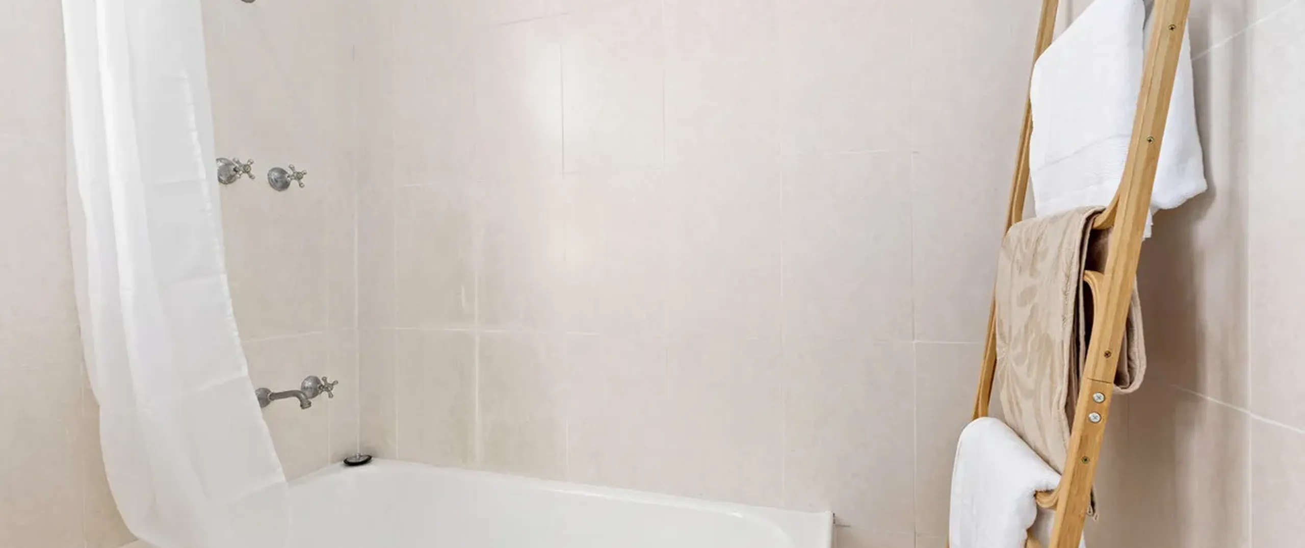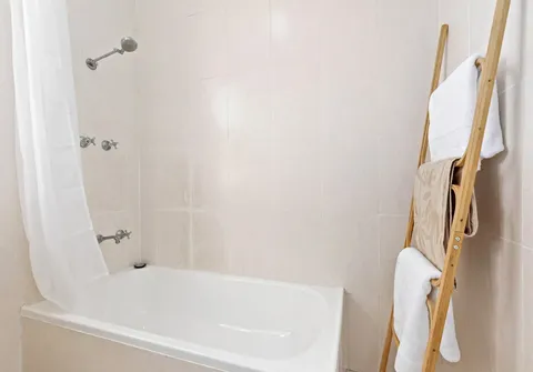 - Neat and tidy bathroom, featuring floor to ceiling tiles