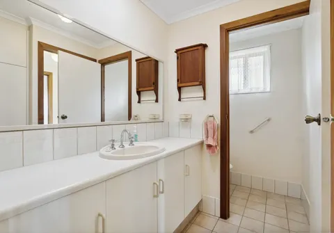 - Master bedroom with large built-in robe and access to the centrally located three-way bathroom