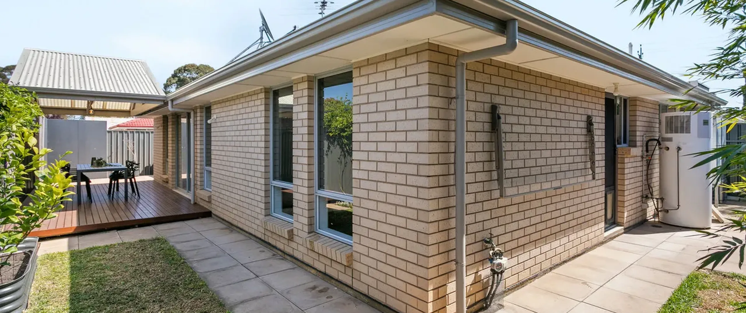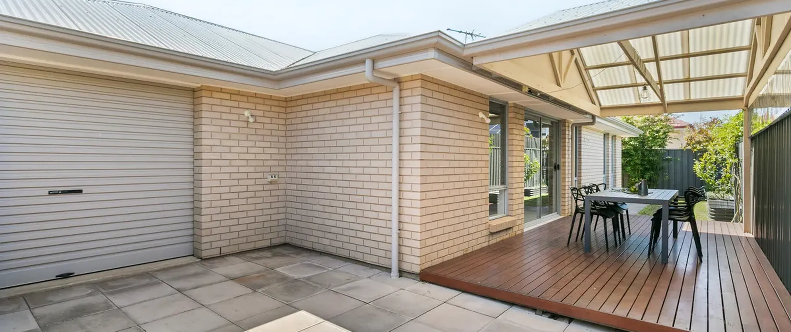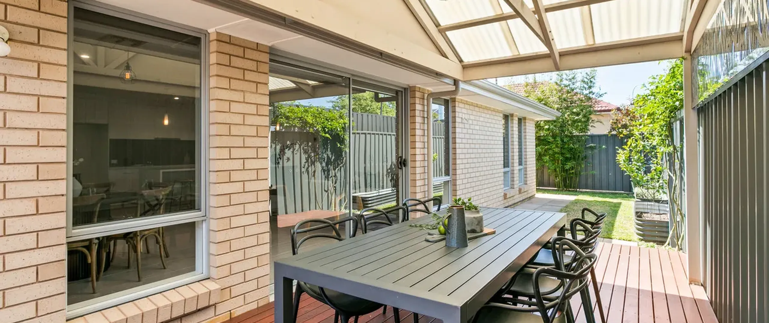 - Alfresco entertaining area with pergola over a Merbau deck