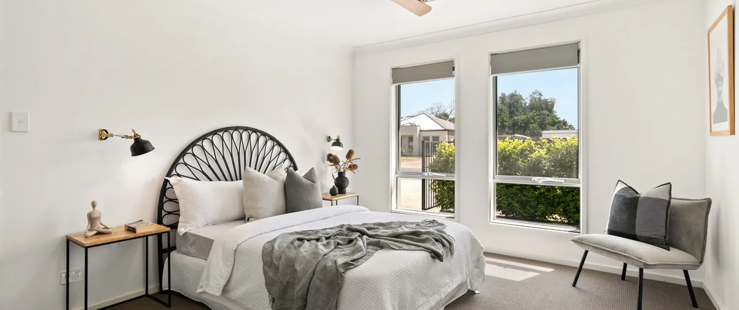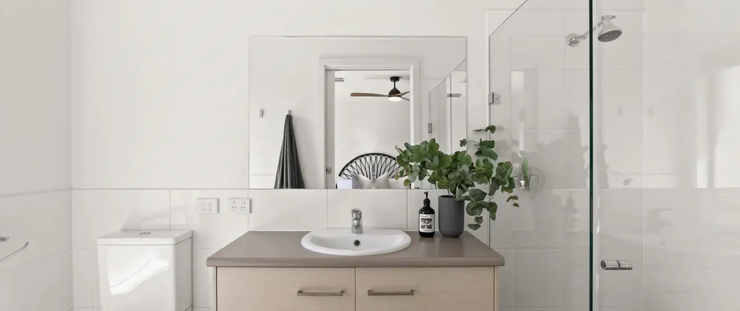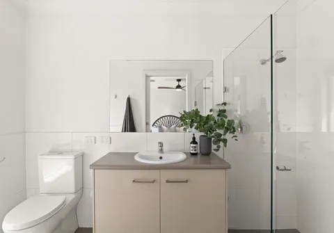 - Master bedroom with modern ensuite, walk-in robe and ceiling fan