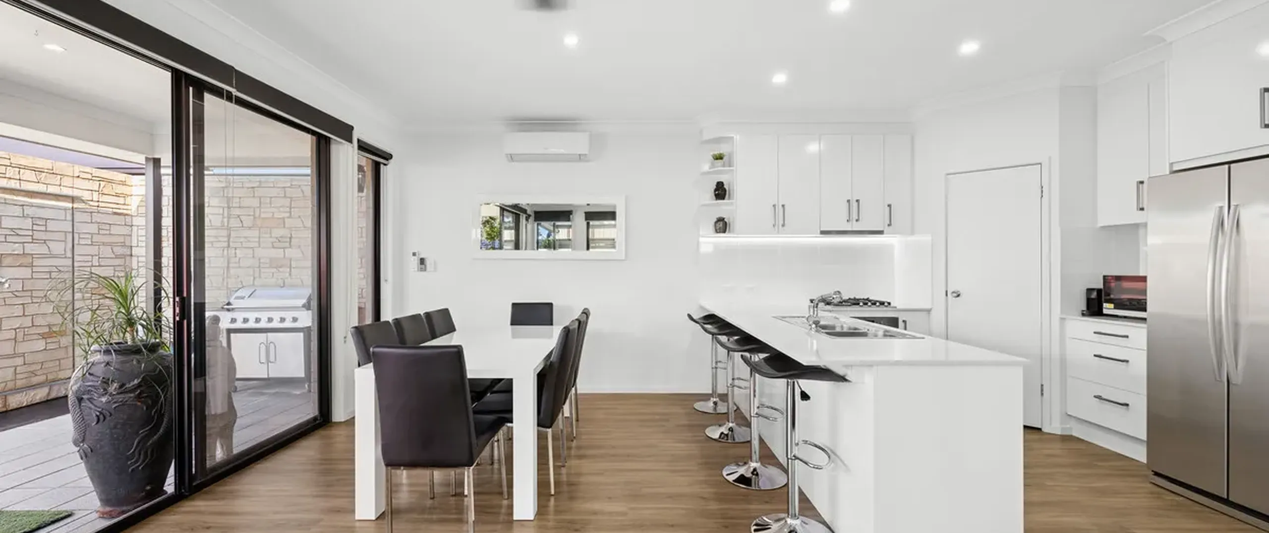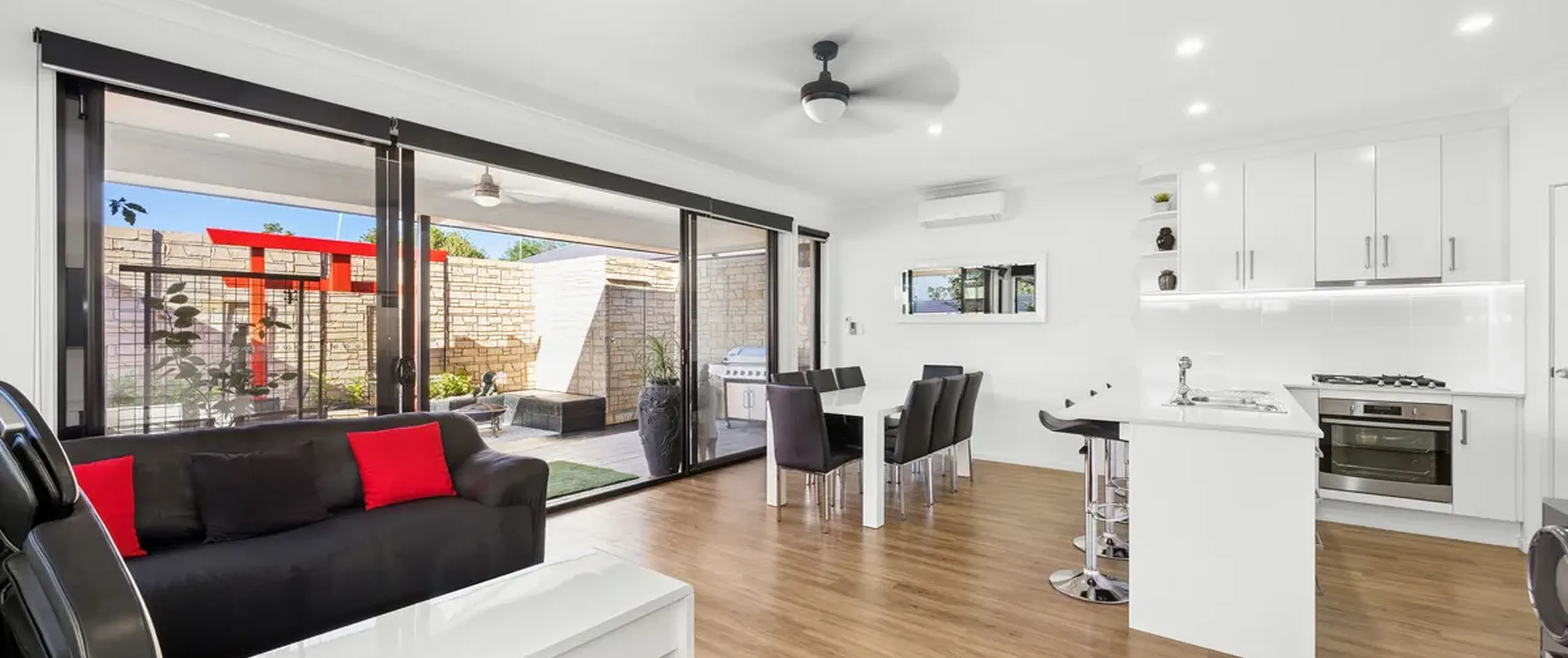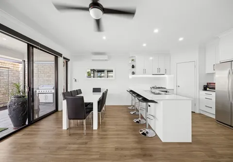 - Inviting open-plan living, dining and kitchen area, bathed in natural light and featuring a remote-controlled overhead fan