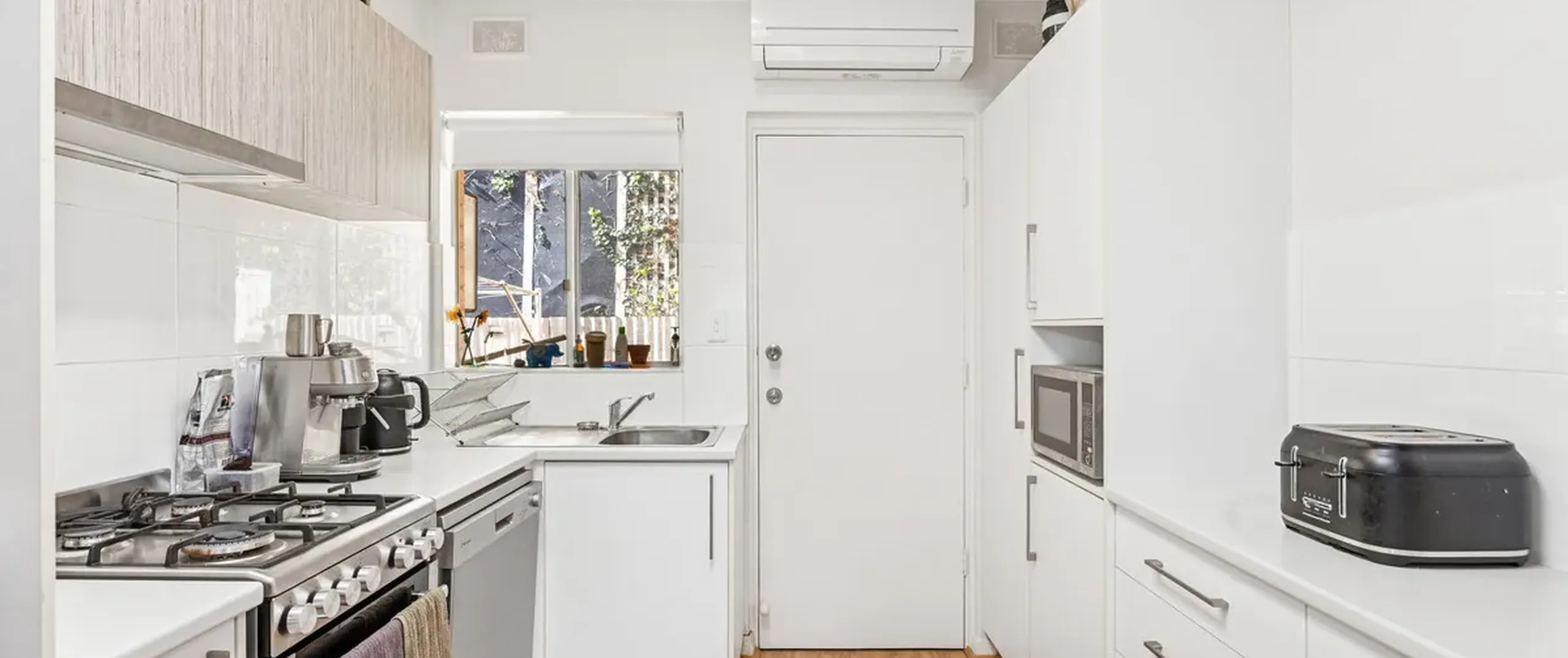 Opening into a light-filled, open-plan living and dining area, the home is complemented by a kitchen that overlooks the space and flows out to a private, low-maintenance courtyard. Two bedrooms with built-in robes are serviced by a central bathroom, while a second courtyard at the front provides the perfect spot to enjoy your morning coffee in the fresh air with a Northern aspect.