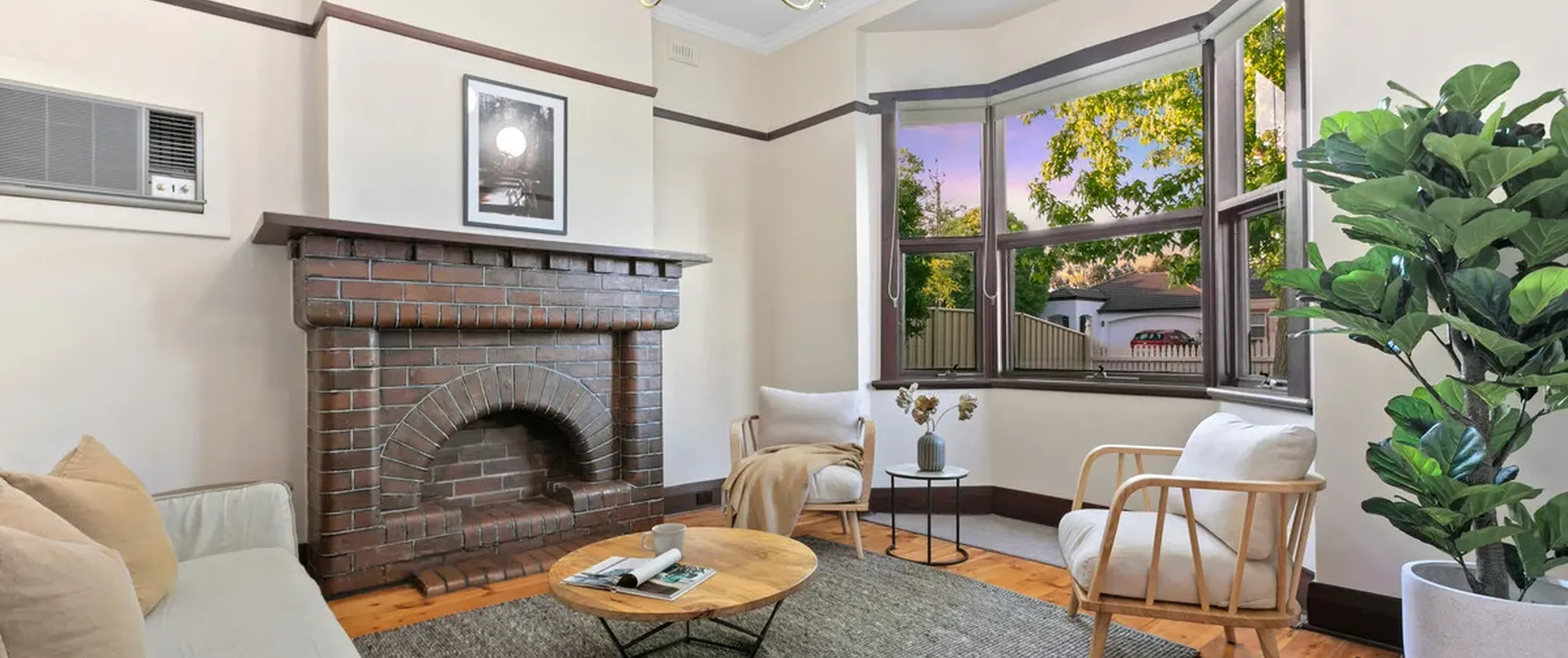 - Formal lounge room with decorative fireplace, air conditioner and plenty of natural light from the endearing bay window
