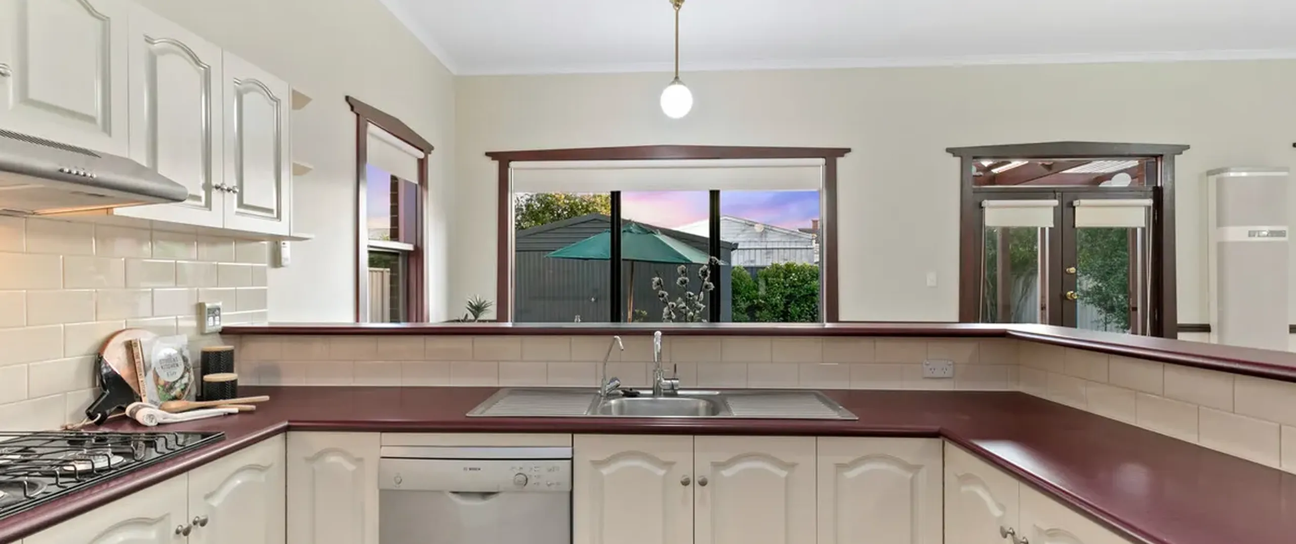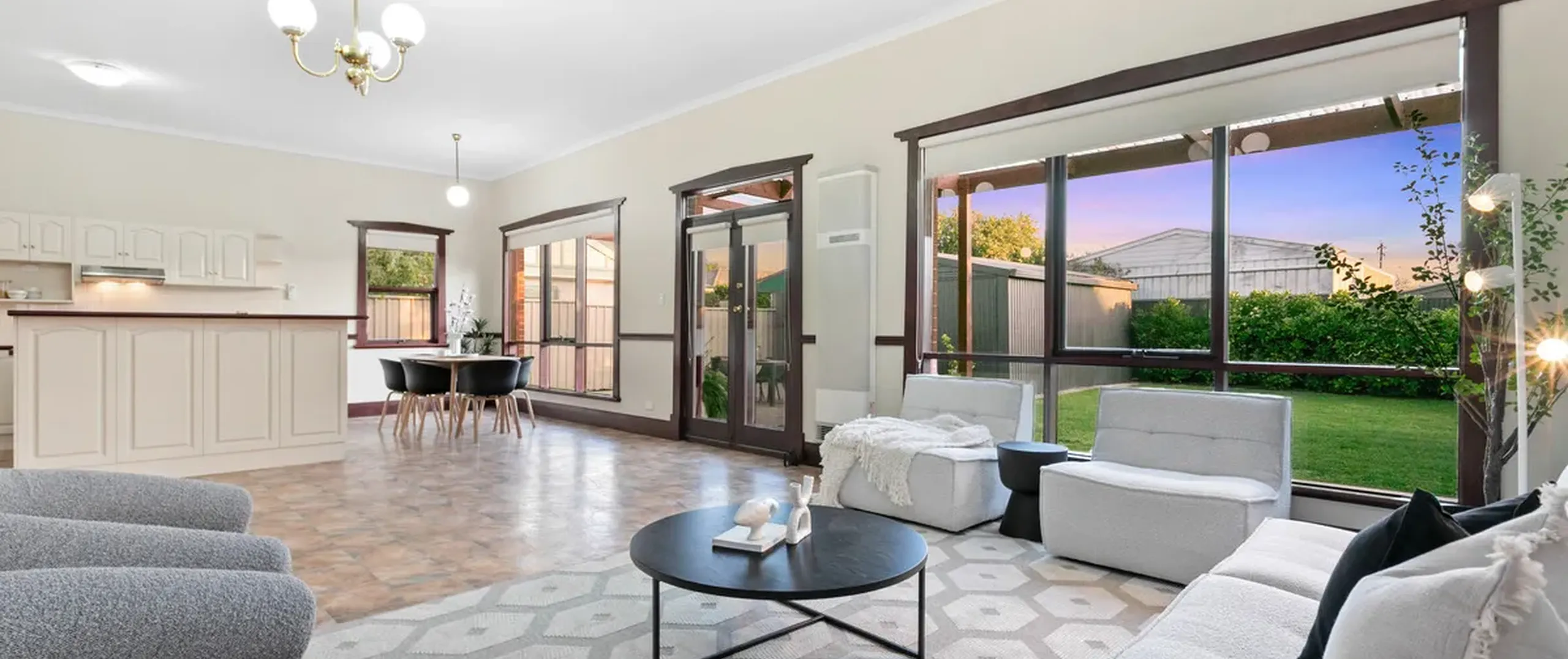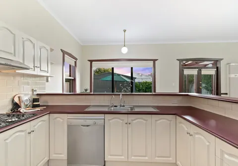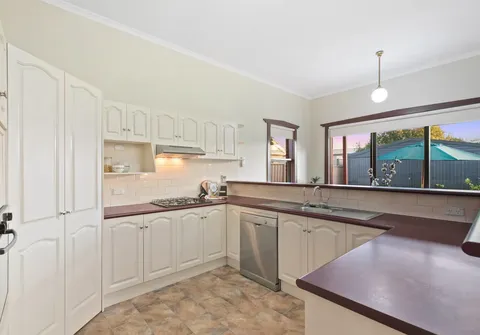 - Bright open-plan living, dining and kitchen, complete with wall heater and French doors opening to the verandah