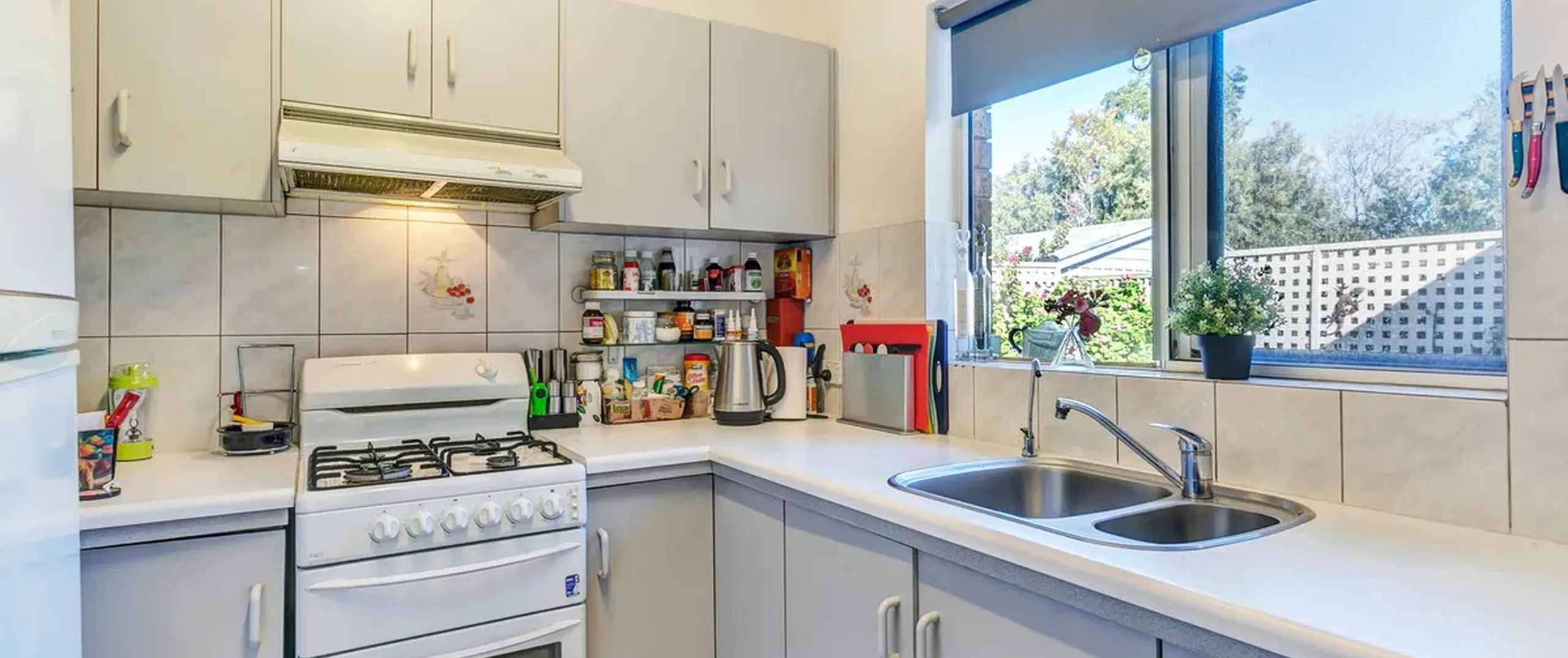 - Functional kitchen with gas cooktop and ample bench and cupboard space