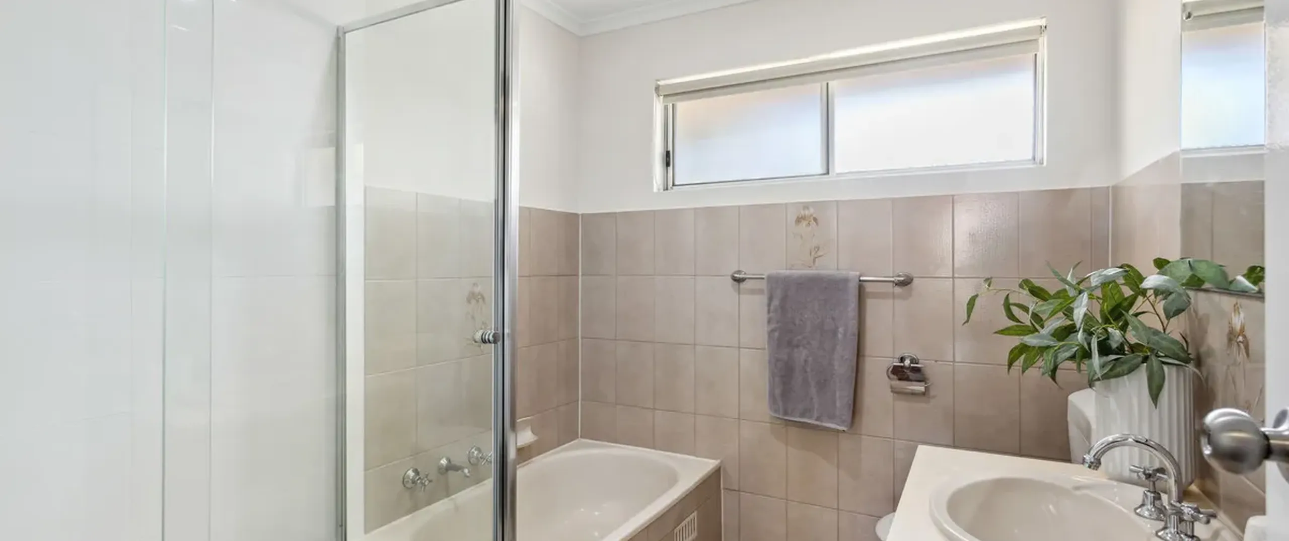 - Neat and tidy bathroom with separate bath and shower