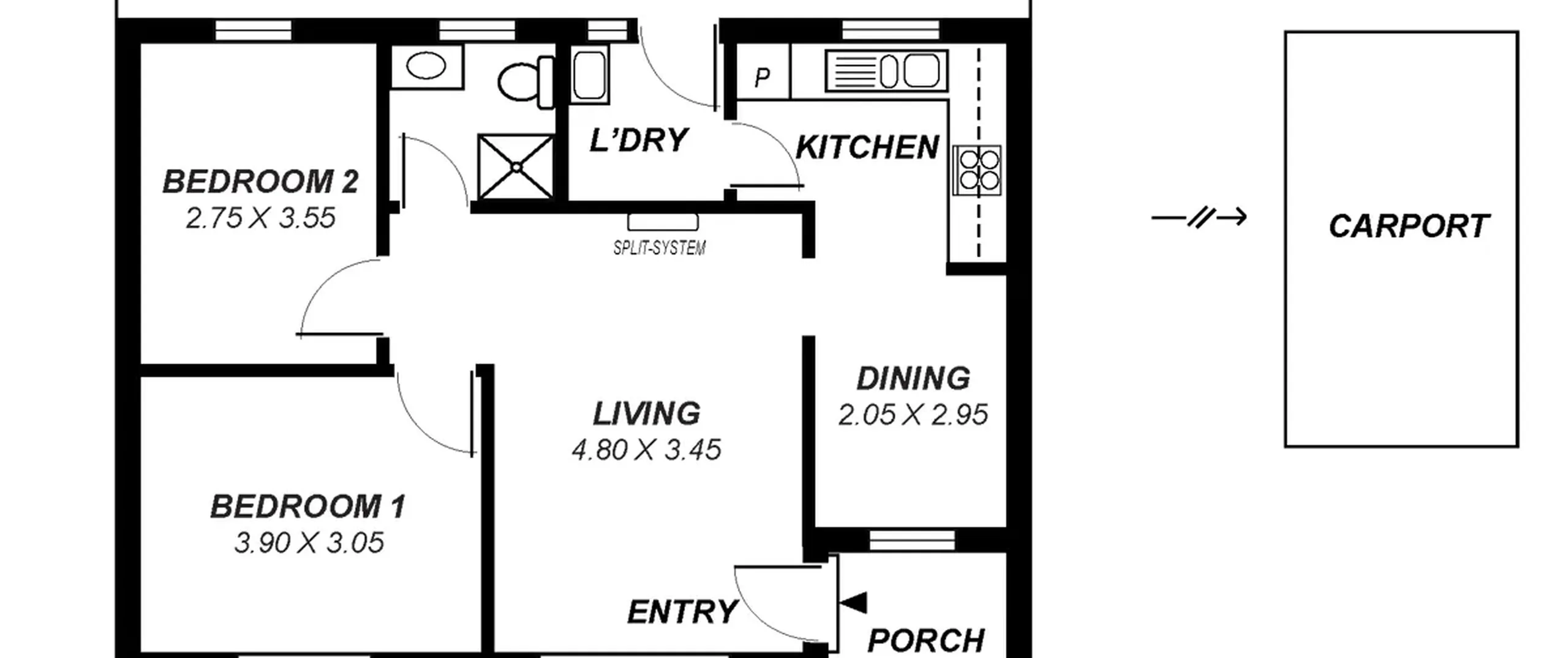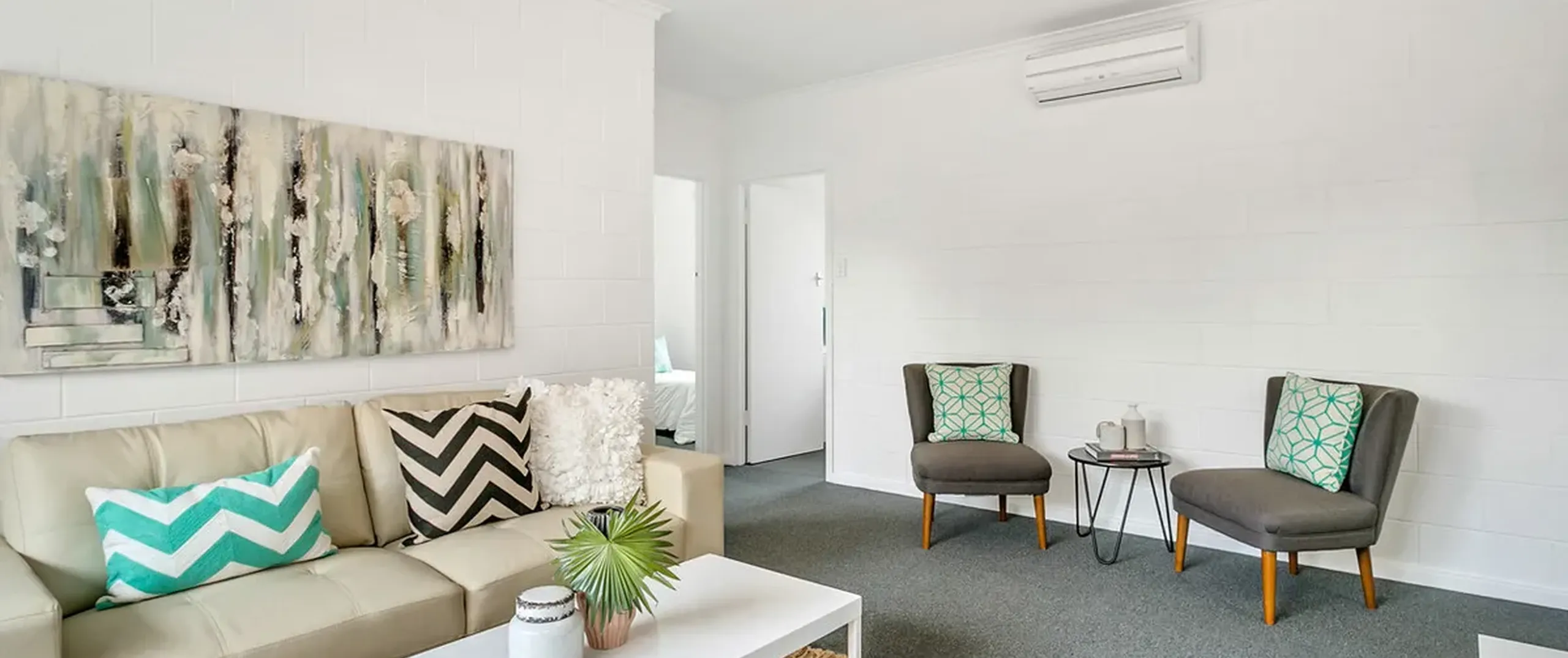- Light filled living area with reverse cycle split system air conditioner