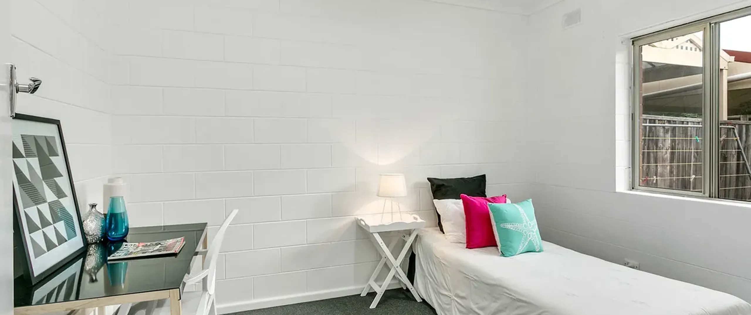 - Neutral décor throughout
