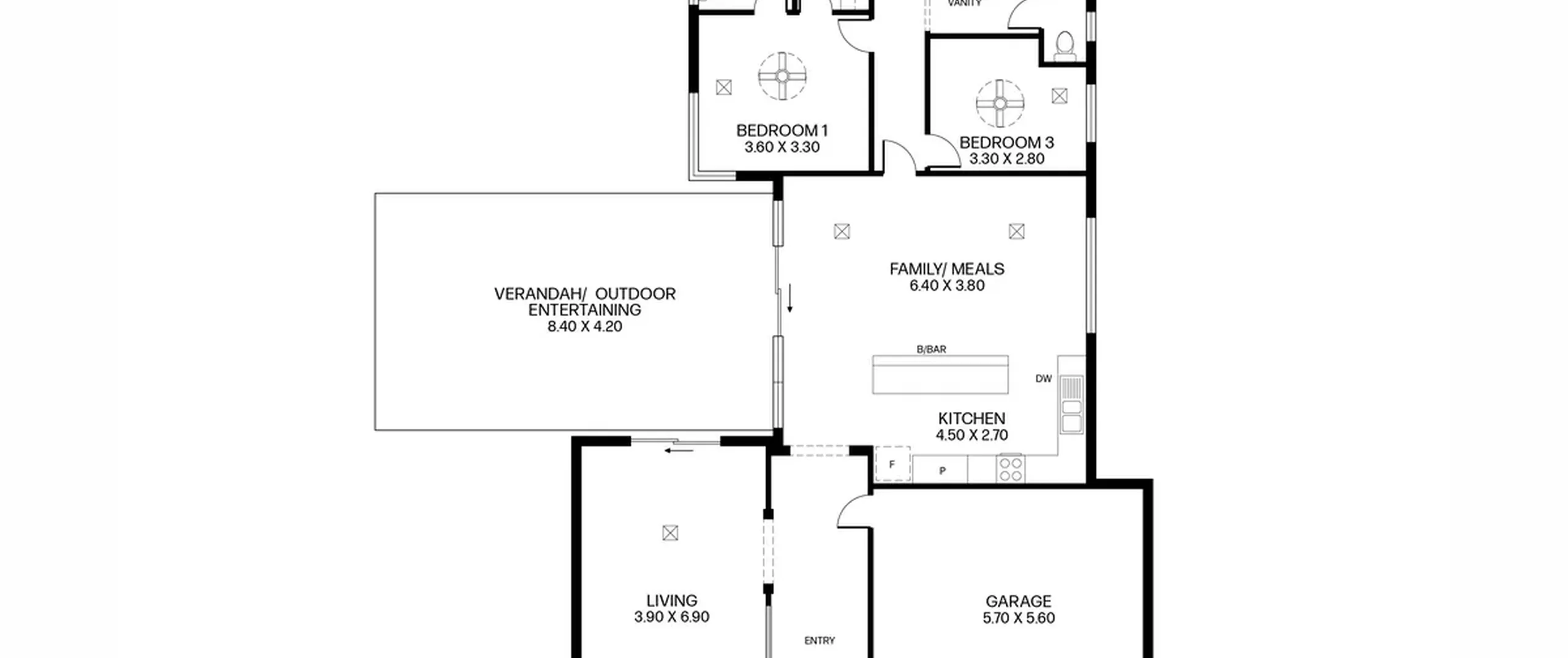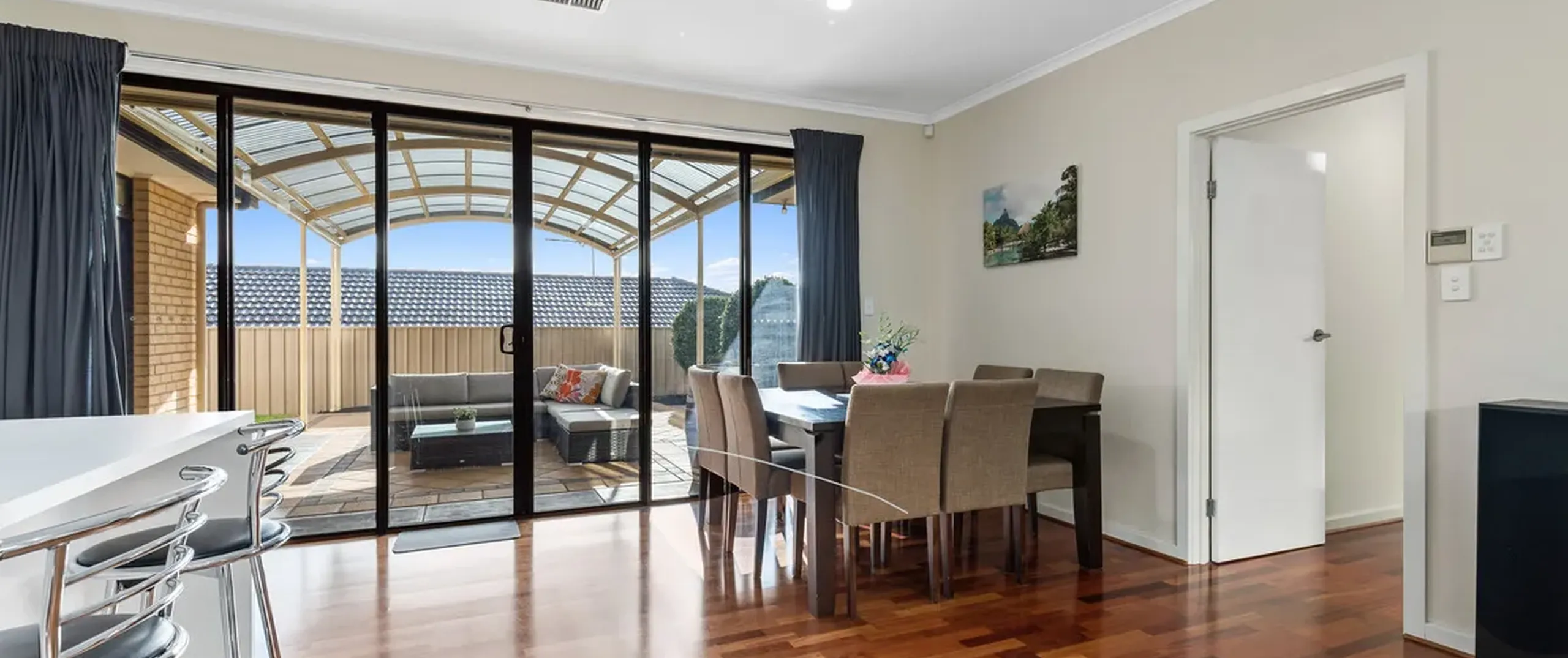 - Light-filled open kitchen, family/meals with double glass doors flowing seamlessly through to the outdoor area