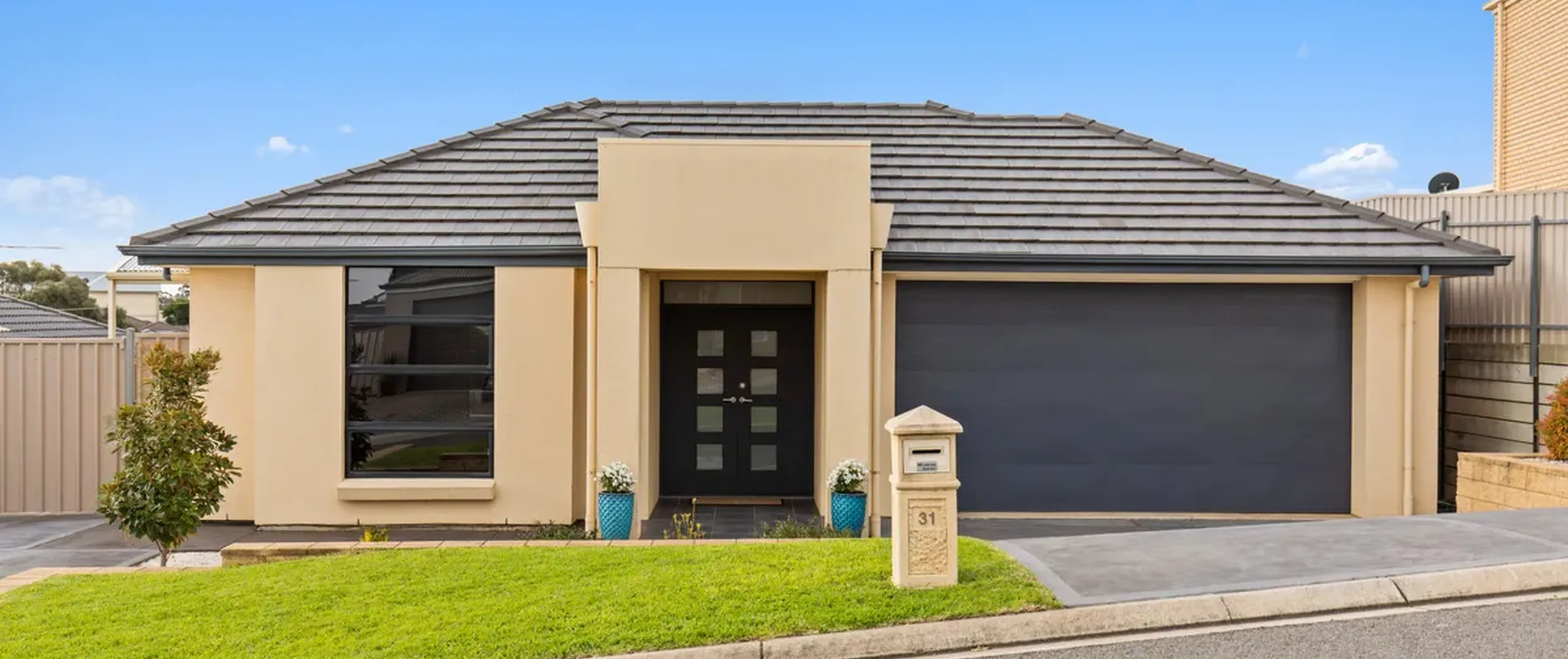 - Double garage with panel lift door and internal access