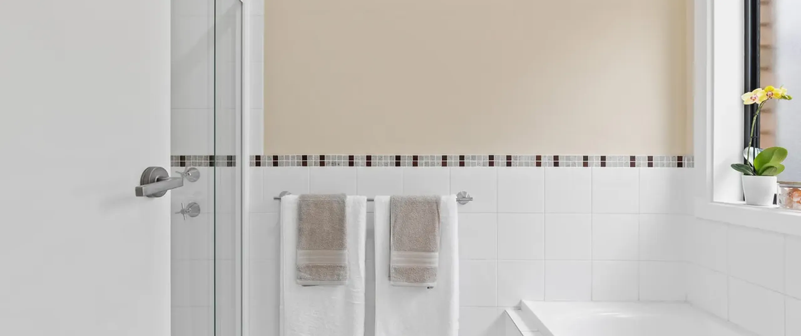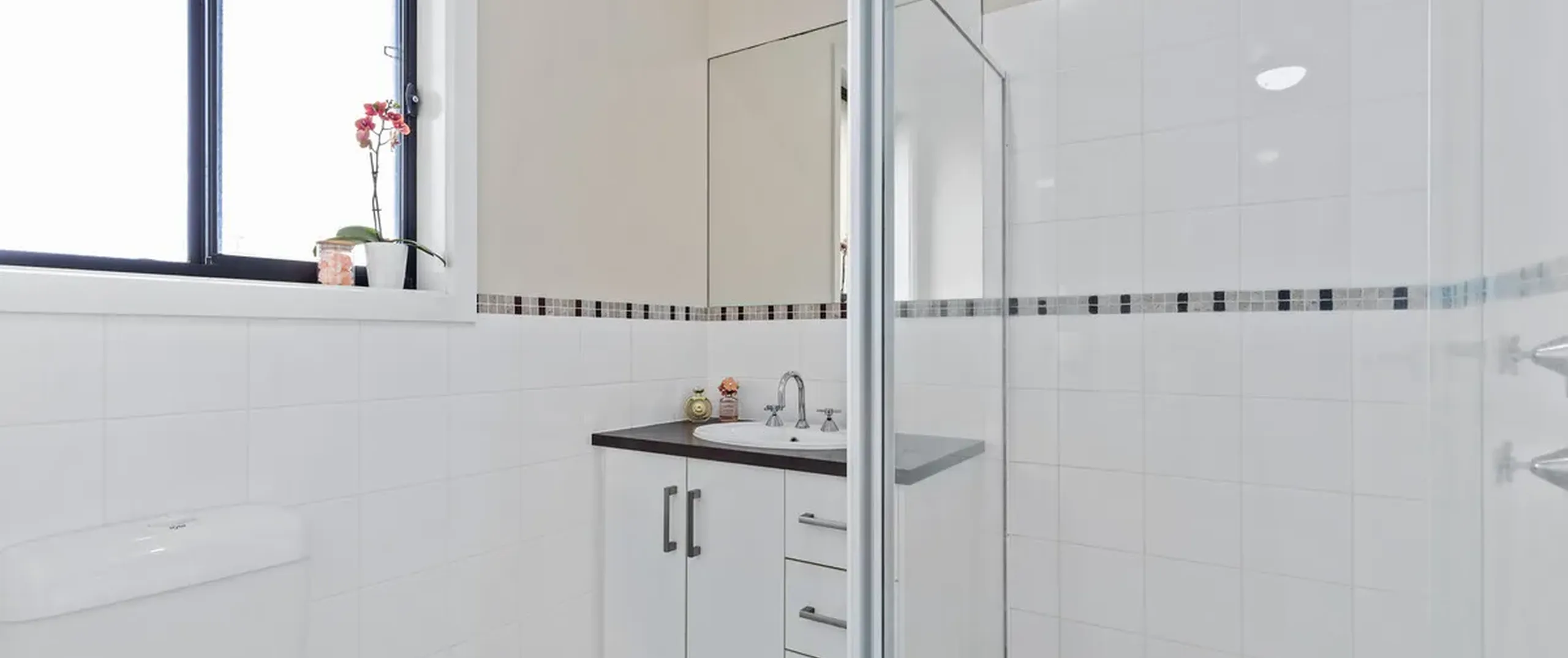 - Central three-way bathroom with separate bath and shower