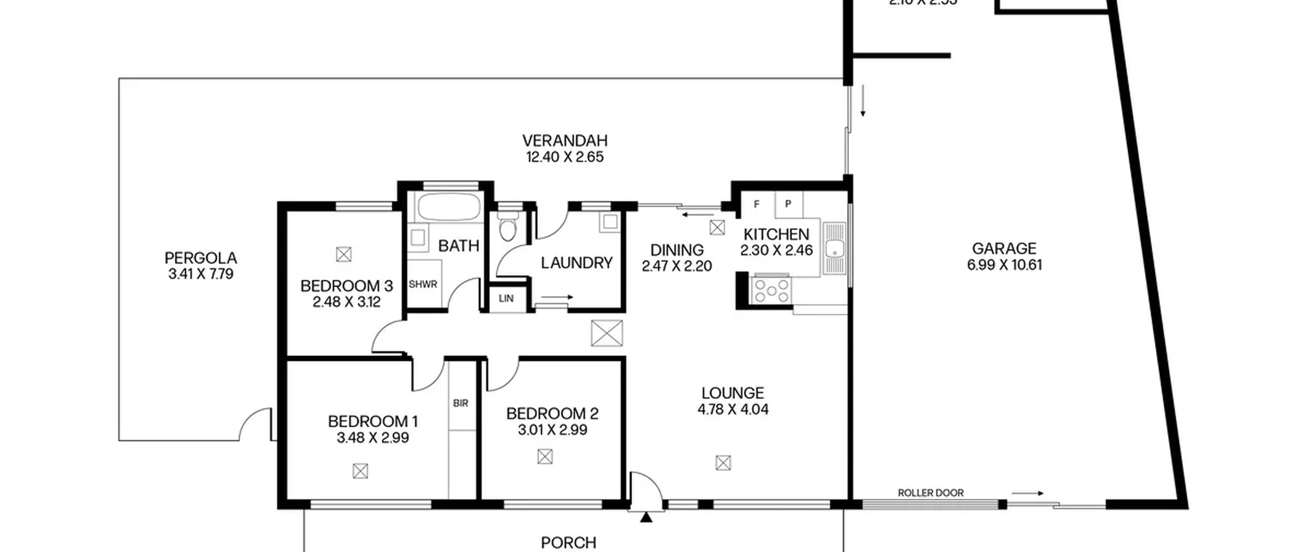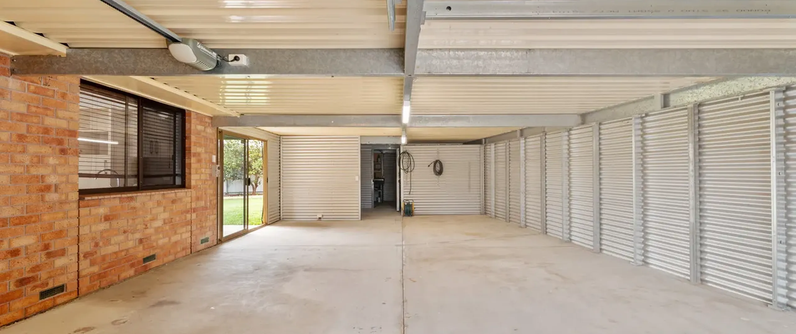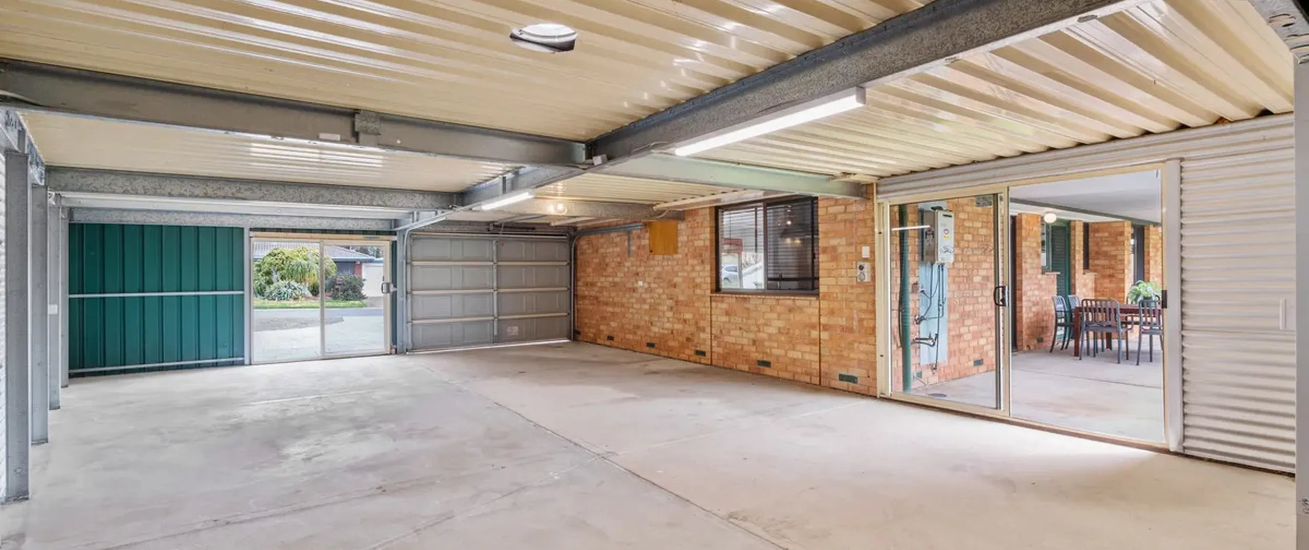 - Oversized garage with roller door, storage room and sliding door access to the front and rear of the property