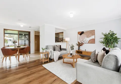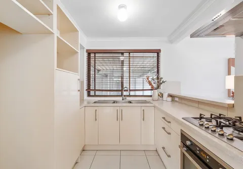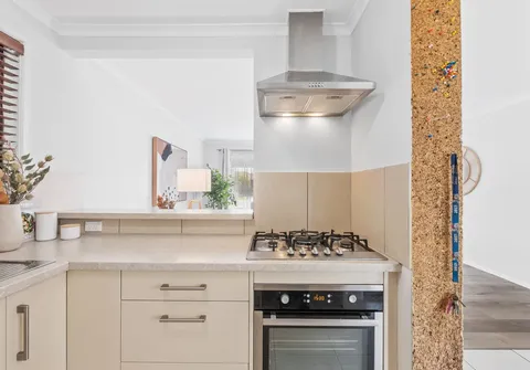 Inside, complete with three generous bedrooms, serviced by a central main bathroom complete with separate bath and shower with floor to ceiling tiles and convenient separate toilet. Natural light fills the inside of the home, filtering throughout the spacious open plan kitchen living and dining space with polished timber flooring underfoot. A well-equipped kitchen with ample storage space and 5 burner gas stove top complete with a handy servery.