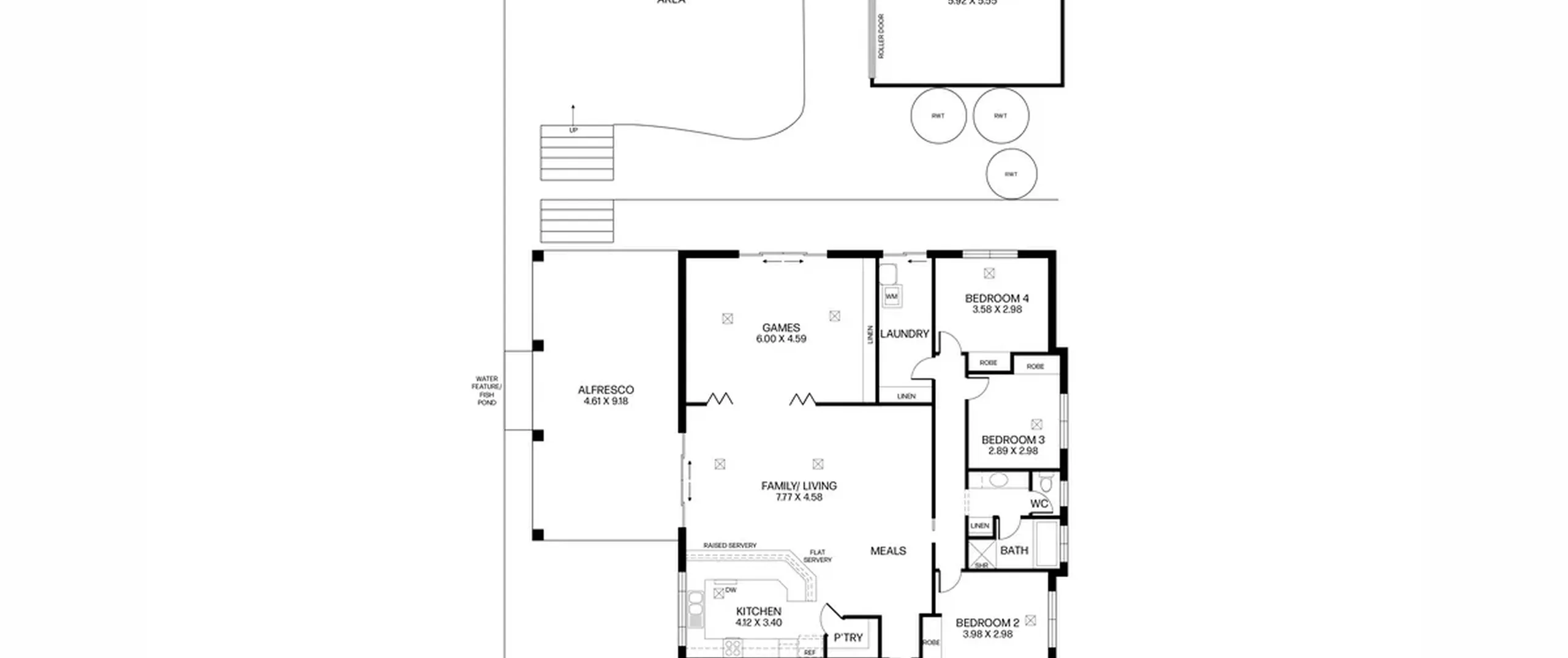 - Large-scale paved alfresco complemented by the stunning water feature and fish pond, providing the perfect spot to entertain friends and family